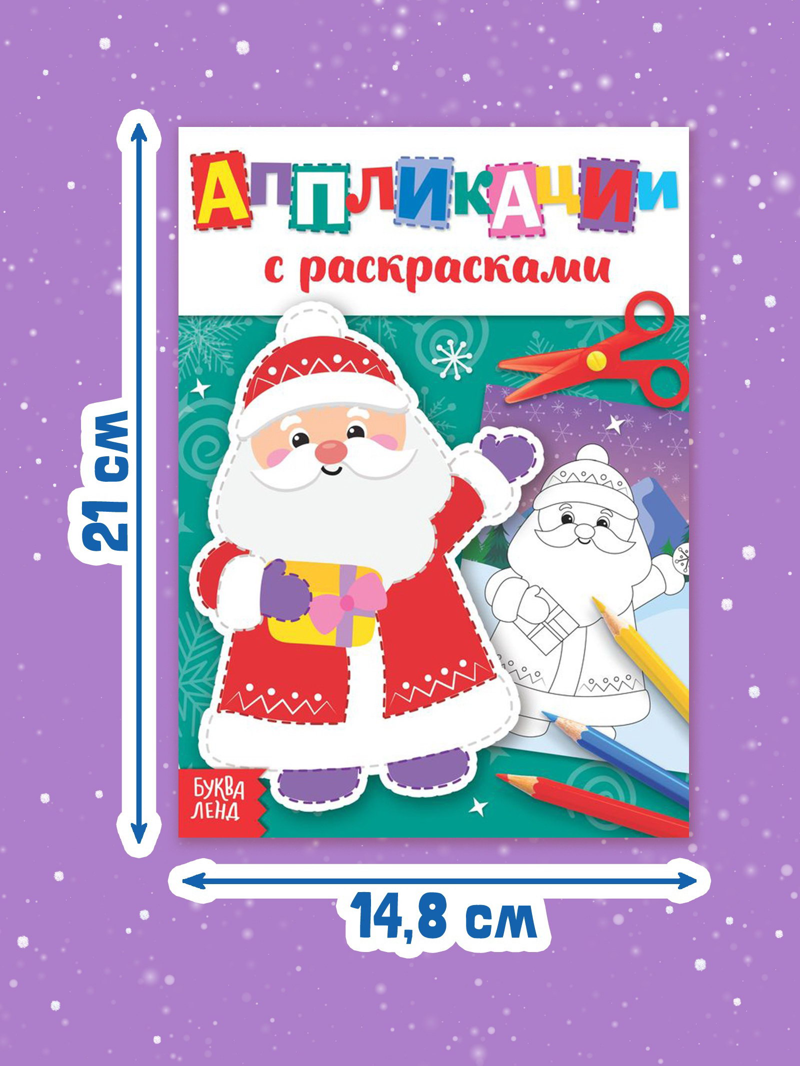 Аппликации с раскрасками "Дедушка Мороз", 20 стр., 0.1x21x15 см., БУКВА-ЛЕНД, Россия