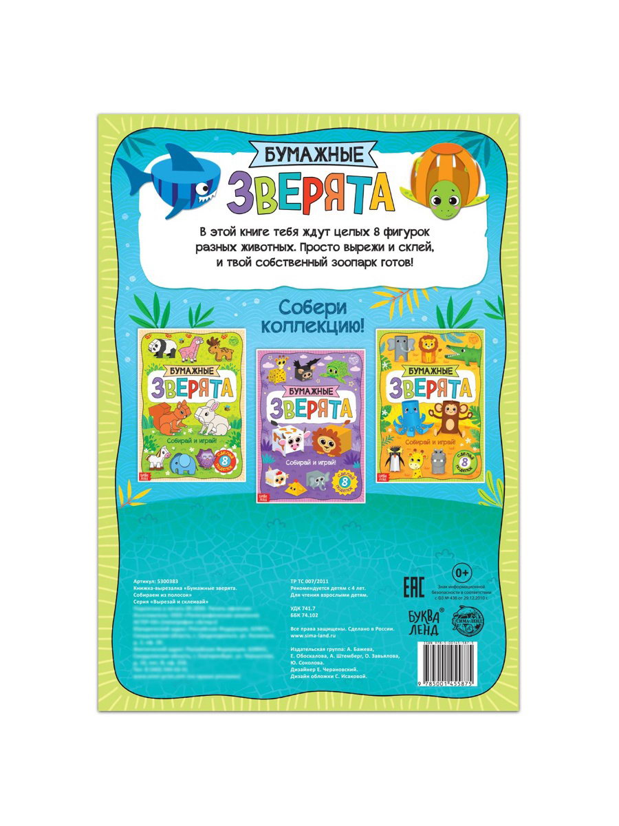Книжка-вырезалка "Бумажные зверята. Собираем из полосок", 20 стр., формат А4, 8 поделок, 0.1x30x21 см., БУКВА-ЛЕНД, Россия