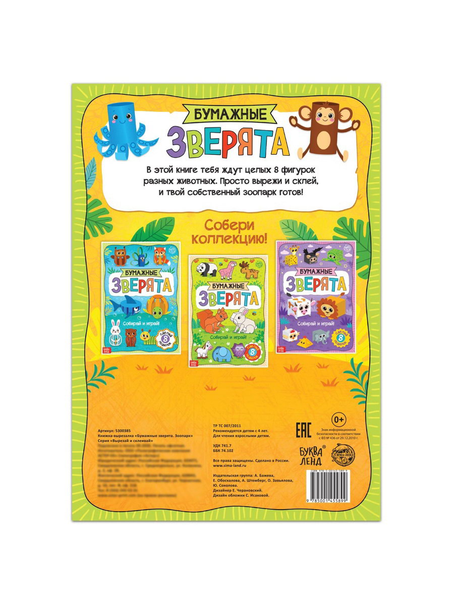 Книжка-вырезалка "Бумажные зверята. Зоопарк", 20 стр., формат А4, 8 поделок, 0.1x29.5x21 см., БУКВА-ЛЕНД, Россия