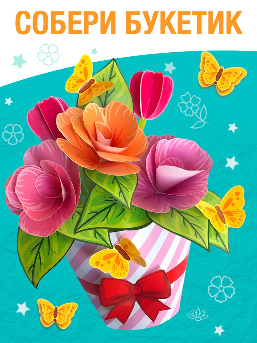 Книга-вырезалка "Объёмные букеты", 28 стр., БУКВА-ЛЕНД, Россия