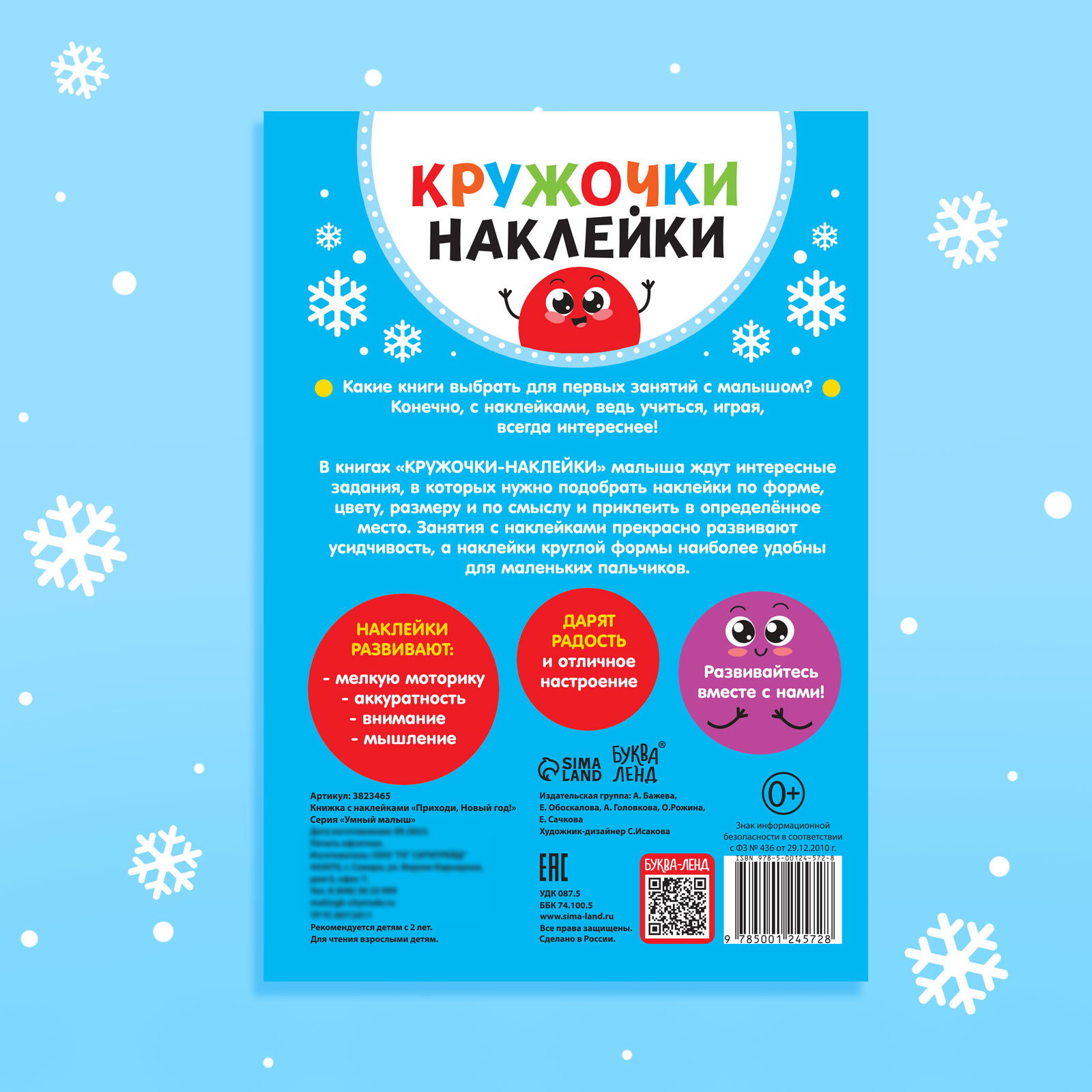 Возраст: Для детей, От 2 лет Вид книги: Аппликации наклейками, Обучающие книги Размер упаковки: 0.3 x 21 x 15 см. Для кого: Унисекс Игрушка с видео: Да Язык издания: Русский Автор: Коллектив авторов Формат: А5 Формат: А5 tnved: 4903000000 Тема обучения: Цвета, формы, звуки Количество страниц: 16 Символ года: Нет Набор: Нет Материал для аппликации: Наклейки Тематика праздника: Новый год Вид наклейки: Бумажная Тип обложки: Мягкий переплёт Год издания: 2018 Тематика: Новогодняя Книжка с наклейками-кружочками поможет скрасить время до долгожданного праздника и потренировать важные навыки. Особенности книги с наклейками