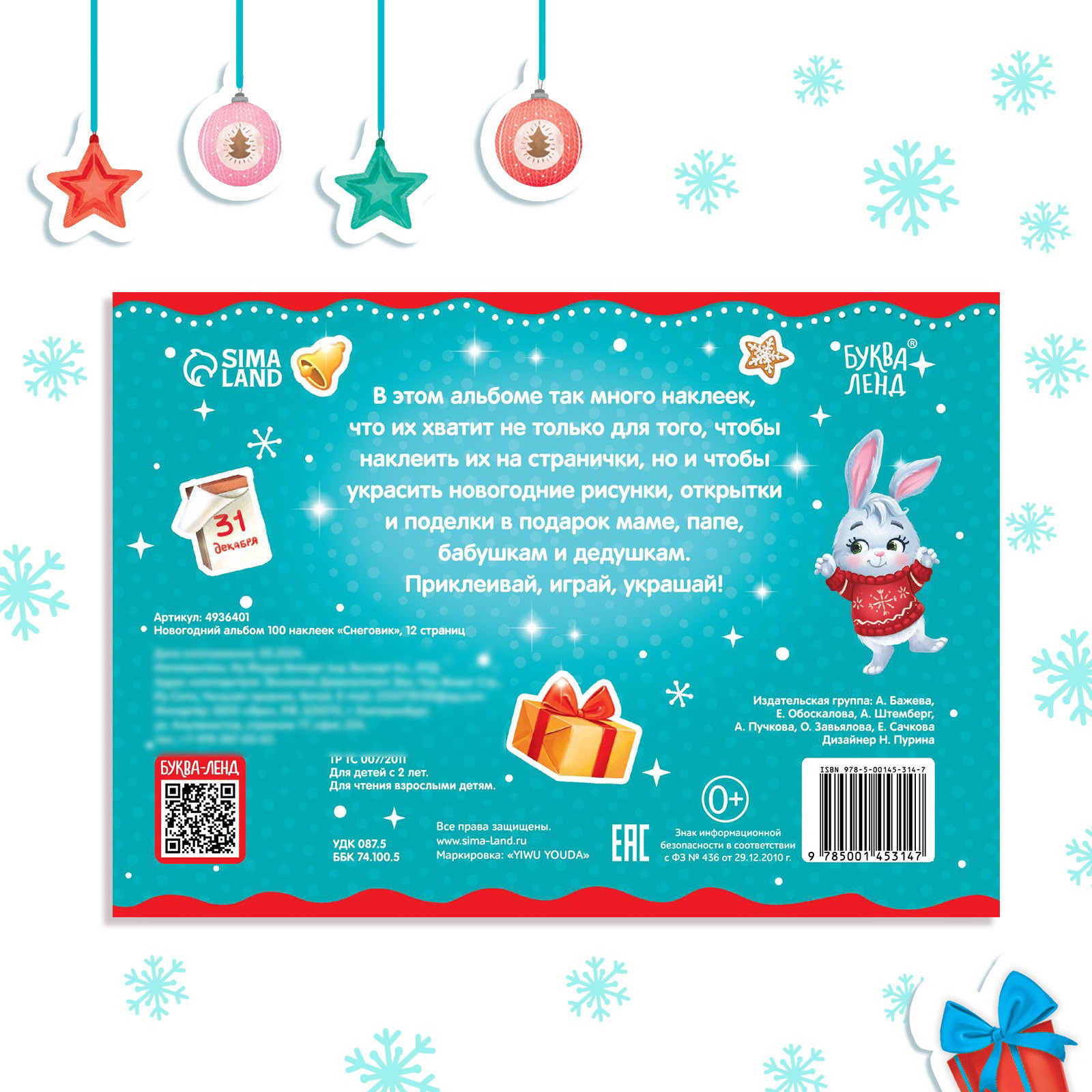 Альбом 100 наклеек "Снеговик", 12 стр., 15x21x0.2 см., БУКВА-ЛЕНД, Китай