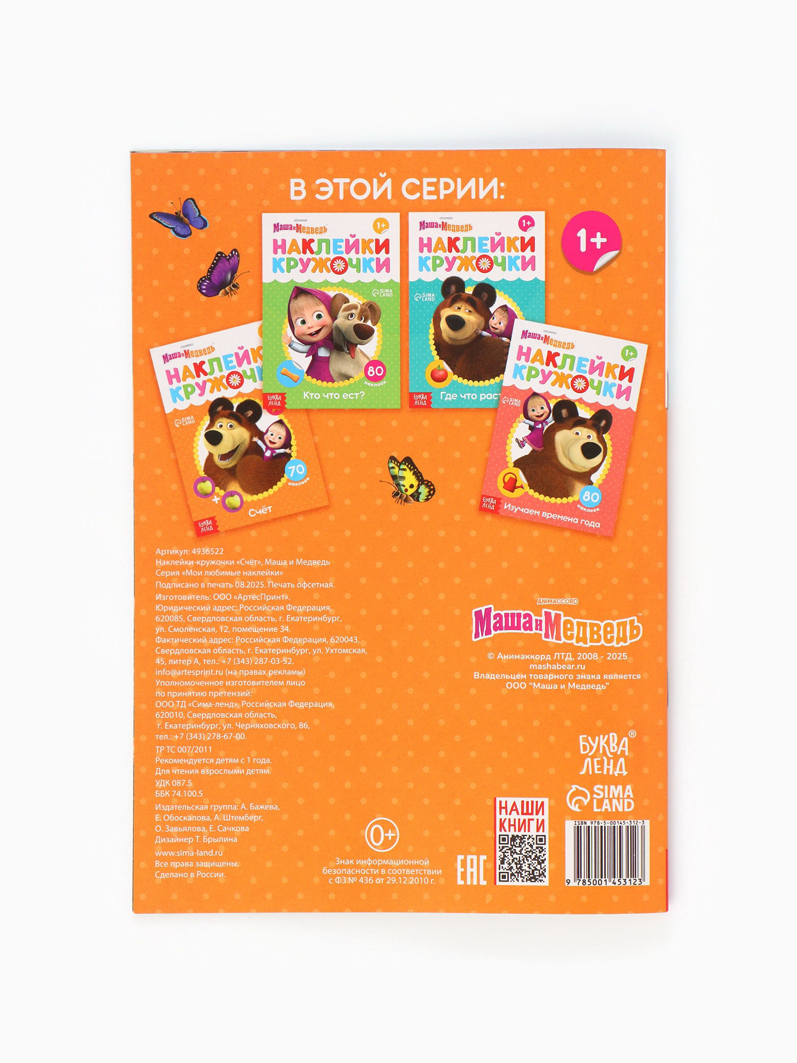 Наклейки-кружочки "Счёт", 16 стр., А5, 15x21x0.2 см., Маша и Медведь, Россия