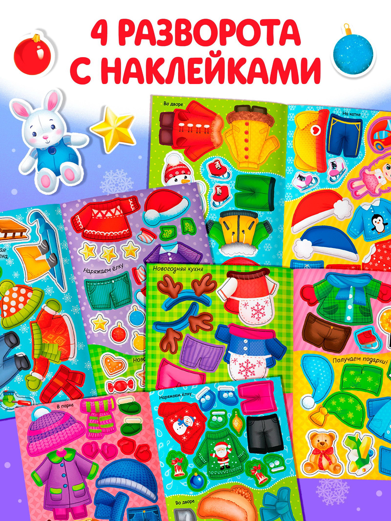 Набор книг с наклейками "Наклейки-одевашки. Новогоднее настроение", 2 шт., по 12 стр., 0.4x15x21 см., БУКВА-ЛЕНД, Китай