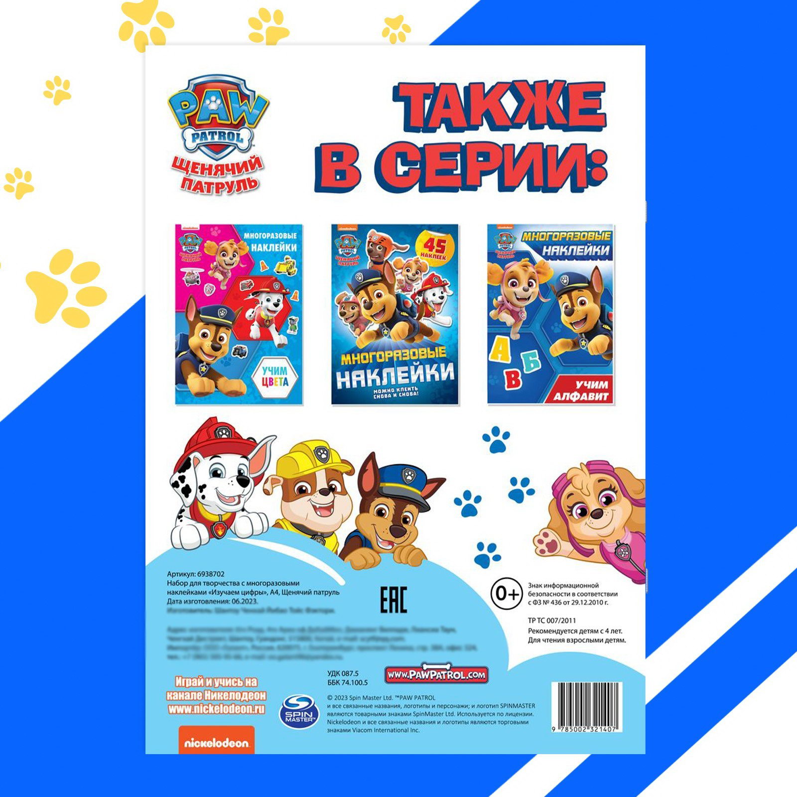 Наклейки детские "Изучаем цифры", многоразовые, Щенячий патруль, МИКС, 21x30x0.1 см., Paw Patrol, Китай
