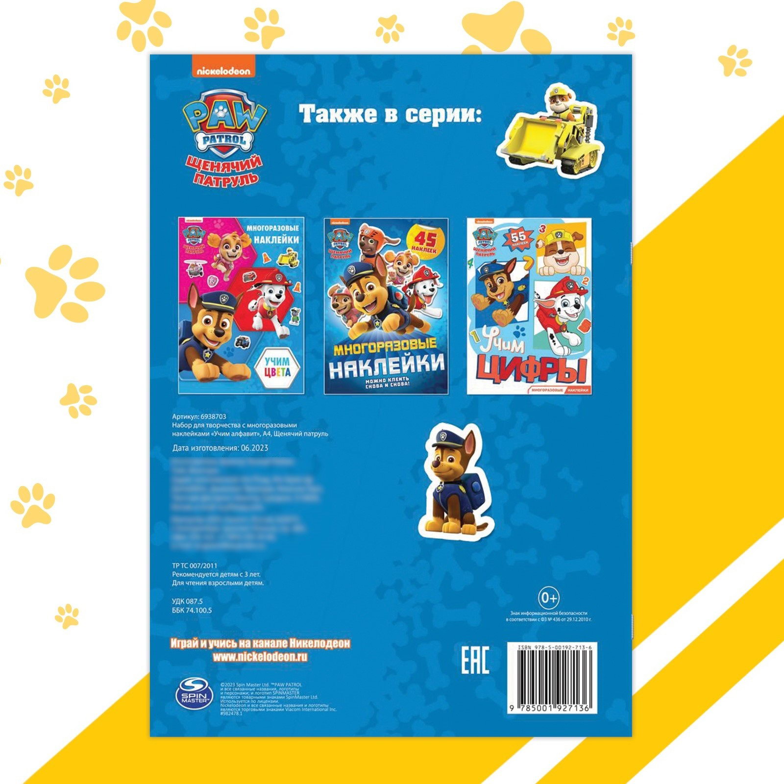 Многоразовые наклейки "Учим алфавит", А4, Щенячий патруль, 21x30x0.1 см., Paw Patrol, Китай