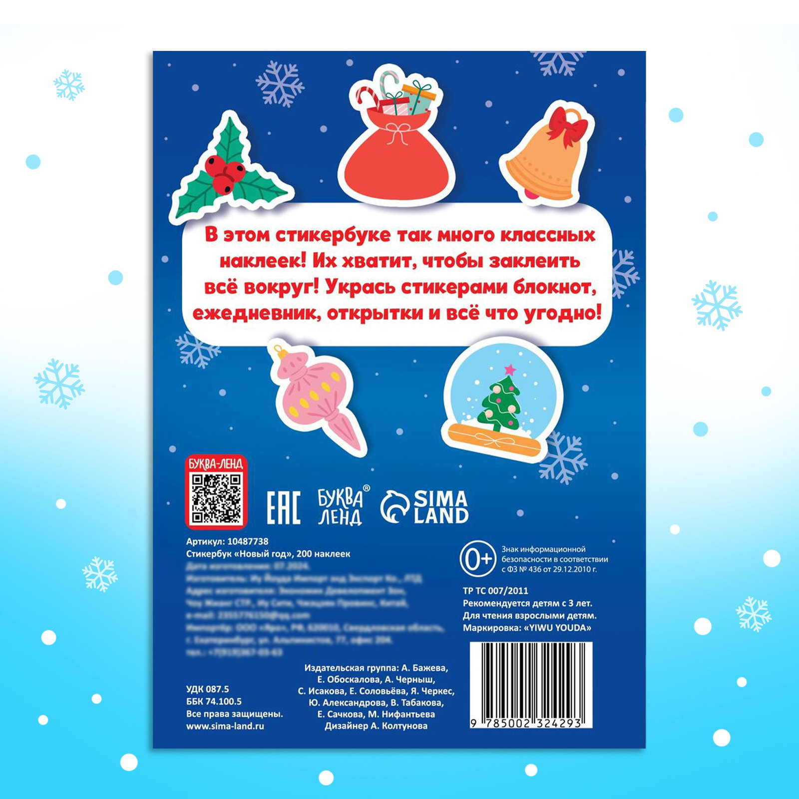 Размер упаковки: 0.3 x 12.5 x 17 см. Возраст: От 3 лет Материал для аппликации: Наклейки Символ года: Нет Набор: Нет Год издания: 2024 Тематика: Новогодняя Тип обложки: Мягкий переплёт Вид наклейки: Альбом наклеек Вид книги: Альбомы Автор: Коллектив авторов Для кого: Унисекс Тематика праздника: Новый год tnved: 4903000000 Формат: А6+ Стикербук "Новый год" это сборник из 200 ярких стикеров, которые добавят праздничного настроения любым предметам. Открытки, блокноты, ежедневники или подарки украсьте всё вокруг с помощью этих новогодних наклеек! Особенности стикербука