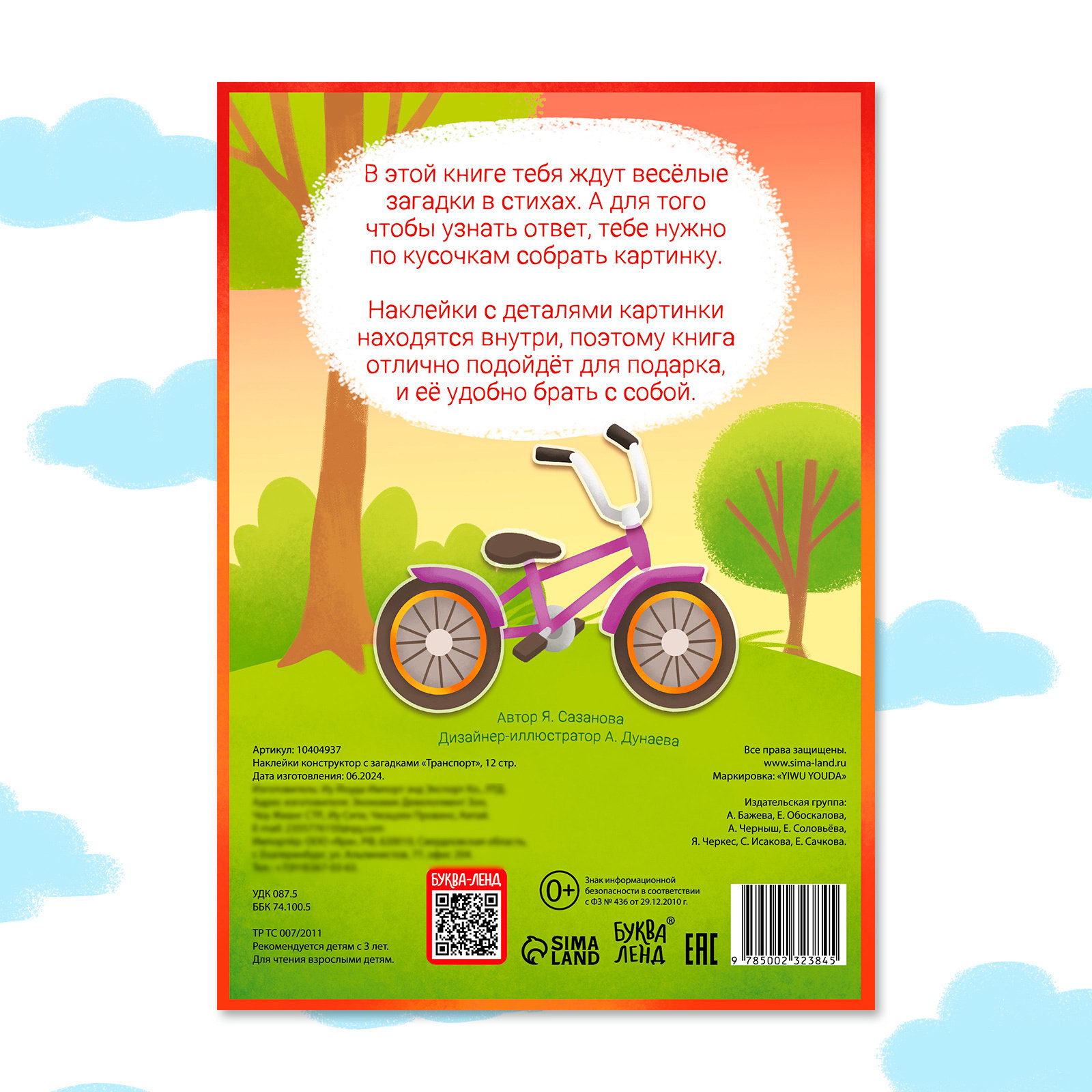 Наклейки конструктор "Транспорт", с загадками, 12 стр., более 40 наклеек, 3+, 0.1x17x24 см., БУКВА-ЛЕНД, Китай