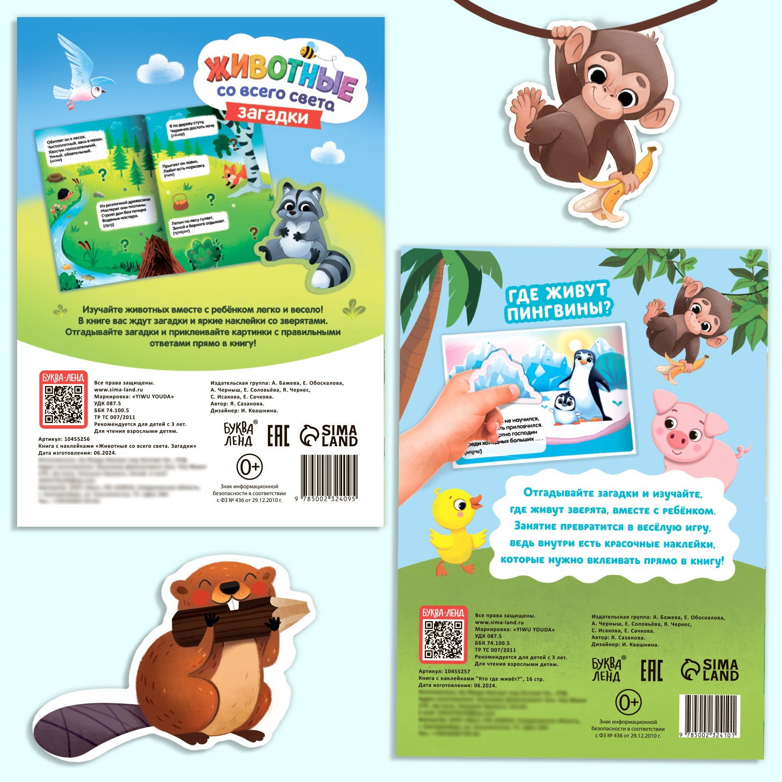 Книжки с наклейками - загадками, набор 2 шт., 60 наклеек, 3+, 0.2x17x24 см., БУКВА-ЛЕНД, Китай