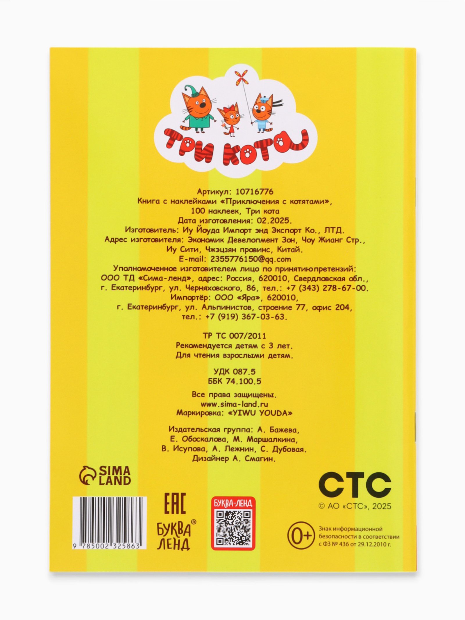 Наклейки 100 шт. "Приключения с котятами", 14.8x21x0.1 см., Три кота, Китай