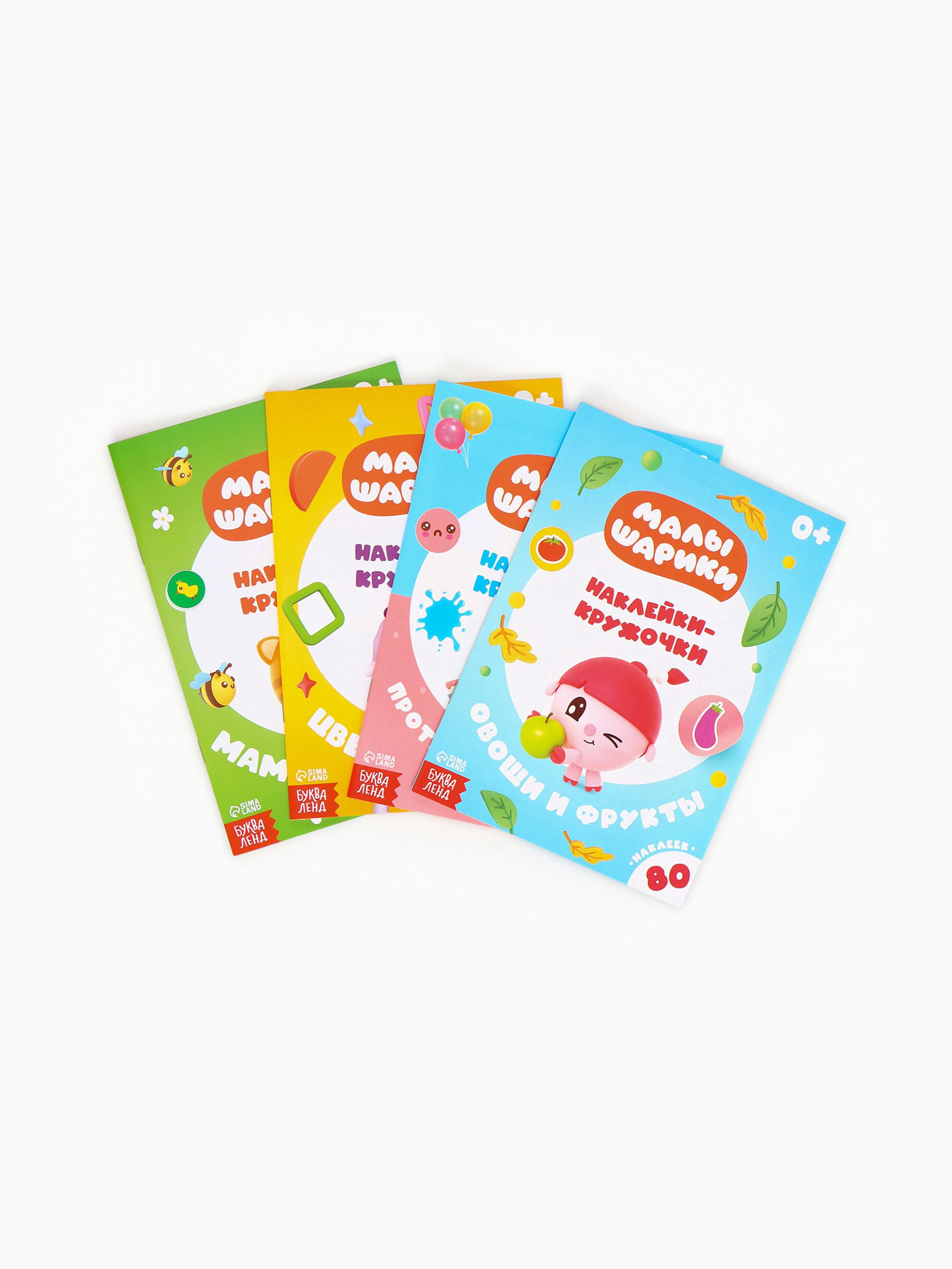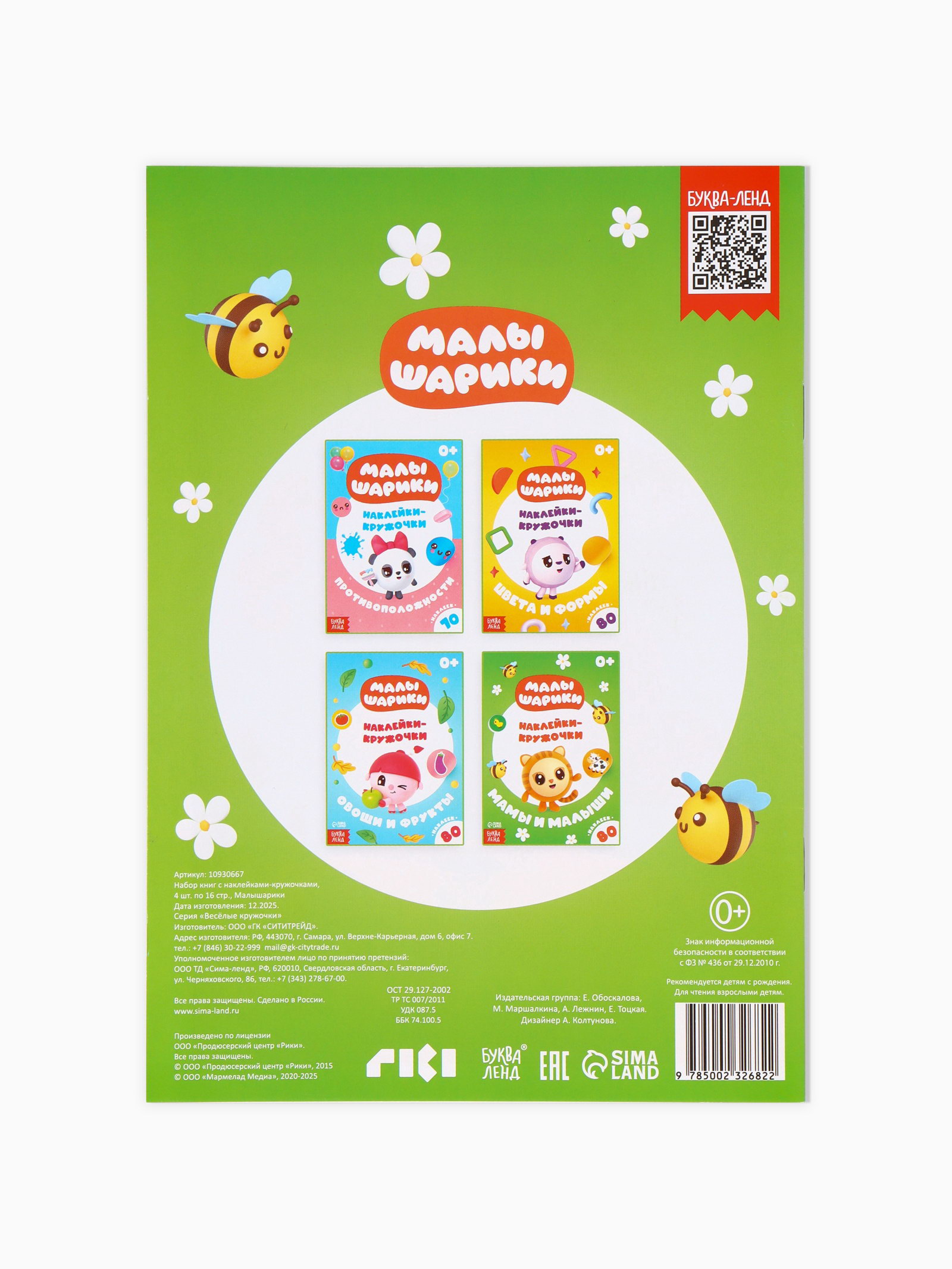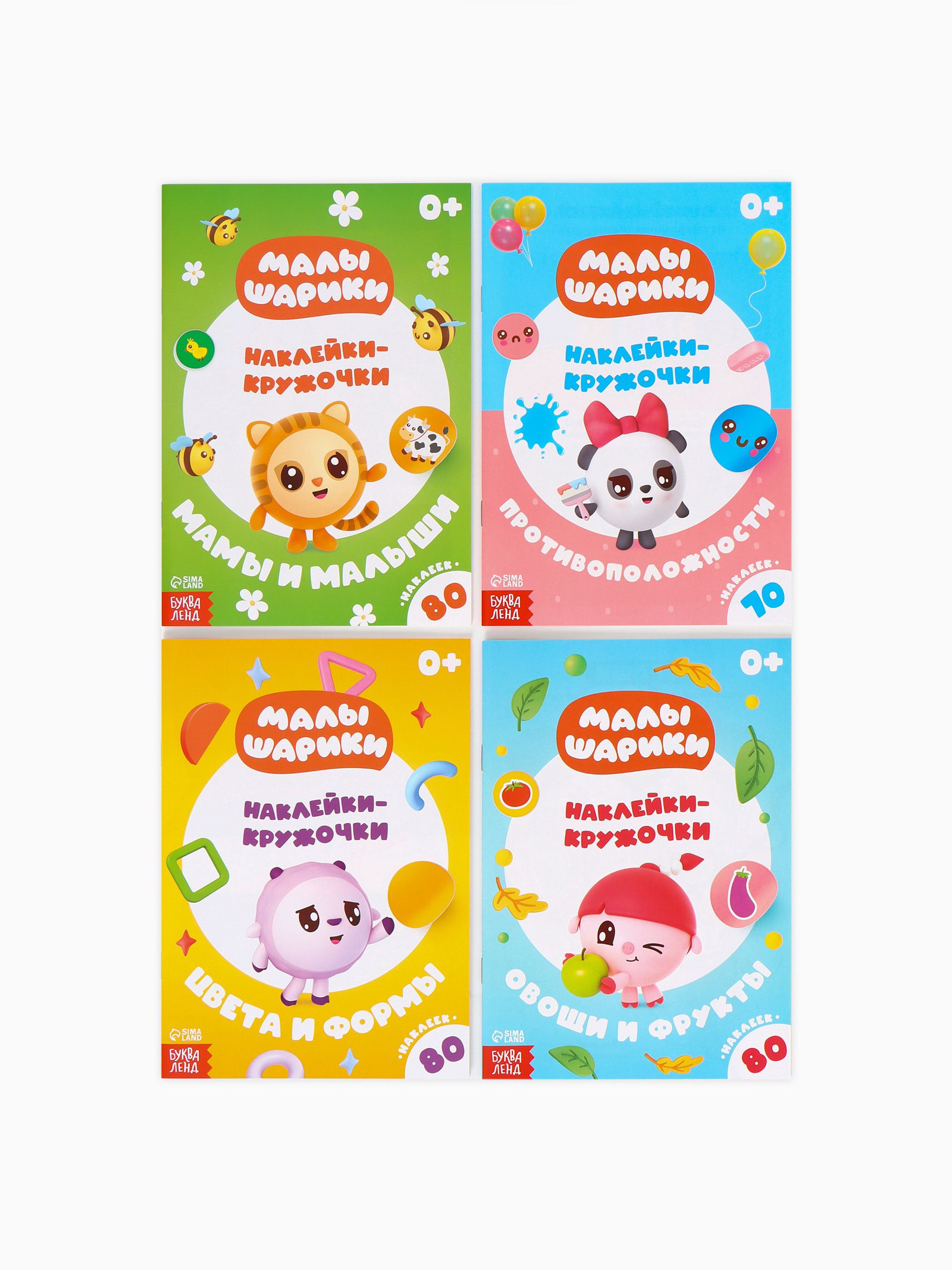 Набор книг с наклейками - кружочками 4 шт. по 16 стр., 14.8x0.7x21 см., Малышарики, Россия