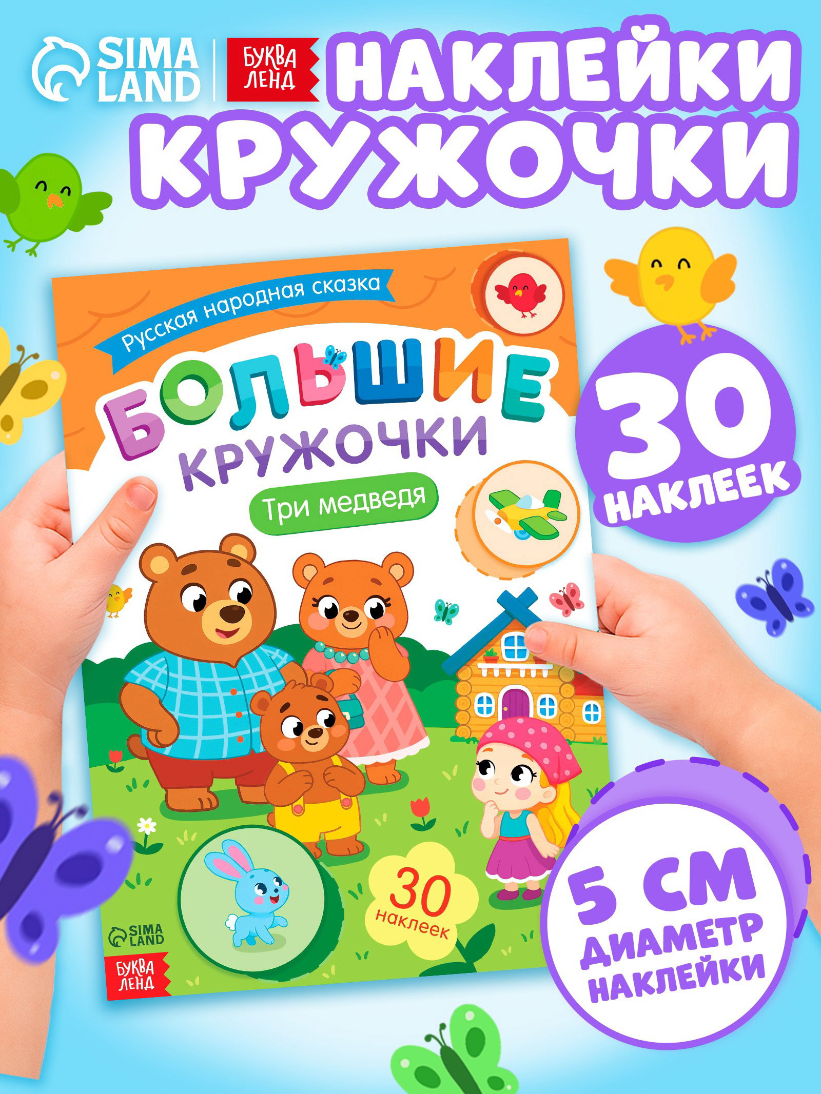 Книга с наклейками "Большие кружочки. Три медведя", 30 наклеек, 28x20x0.3 см., БУКВА-ЛЕНД, Россия