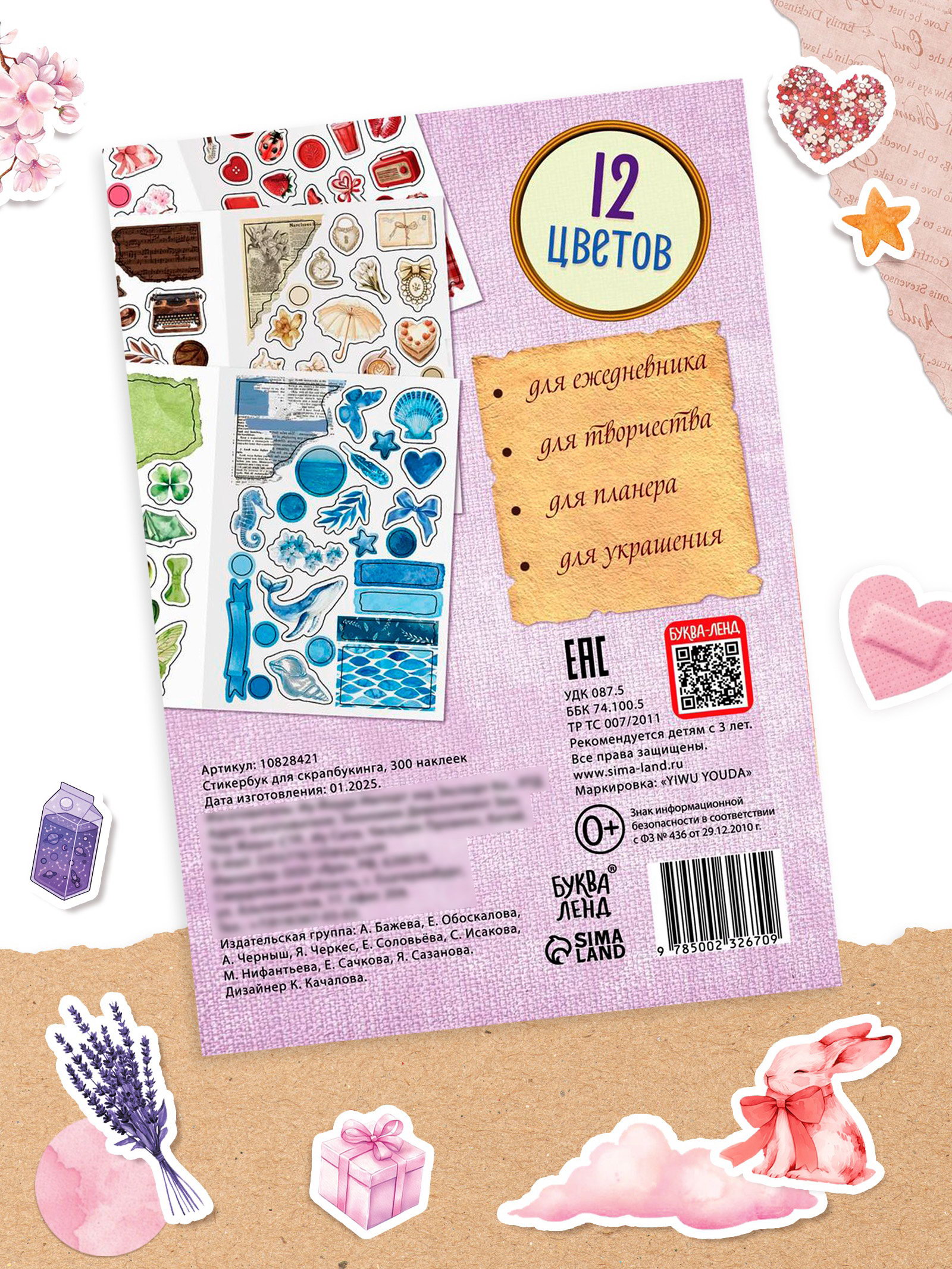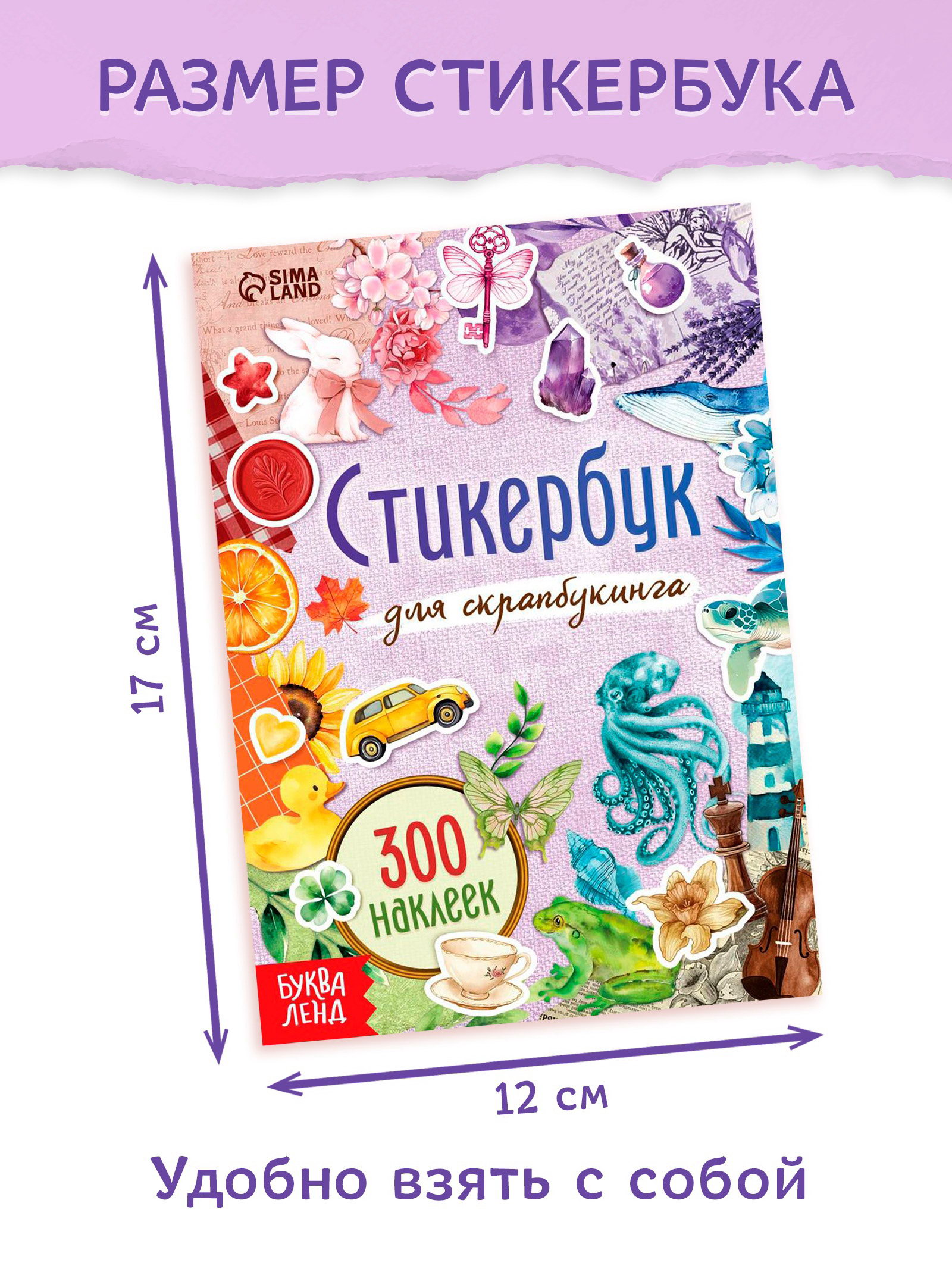Стикербук для скрапбукинга, 300 наклеек, 0.3x12x17 см., БУКВА-ЛЕНД, Китай