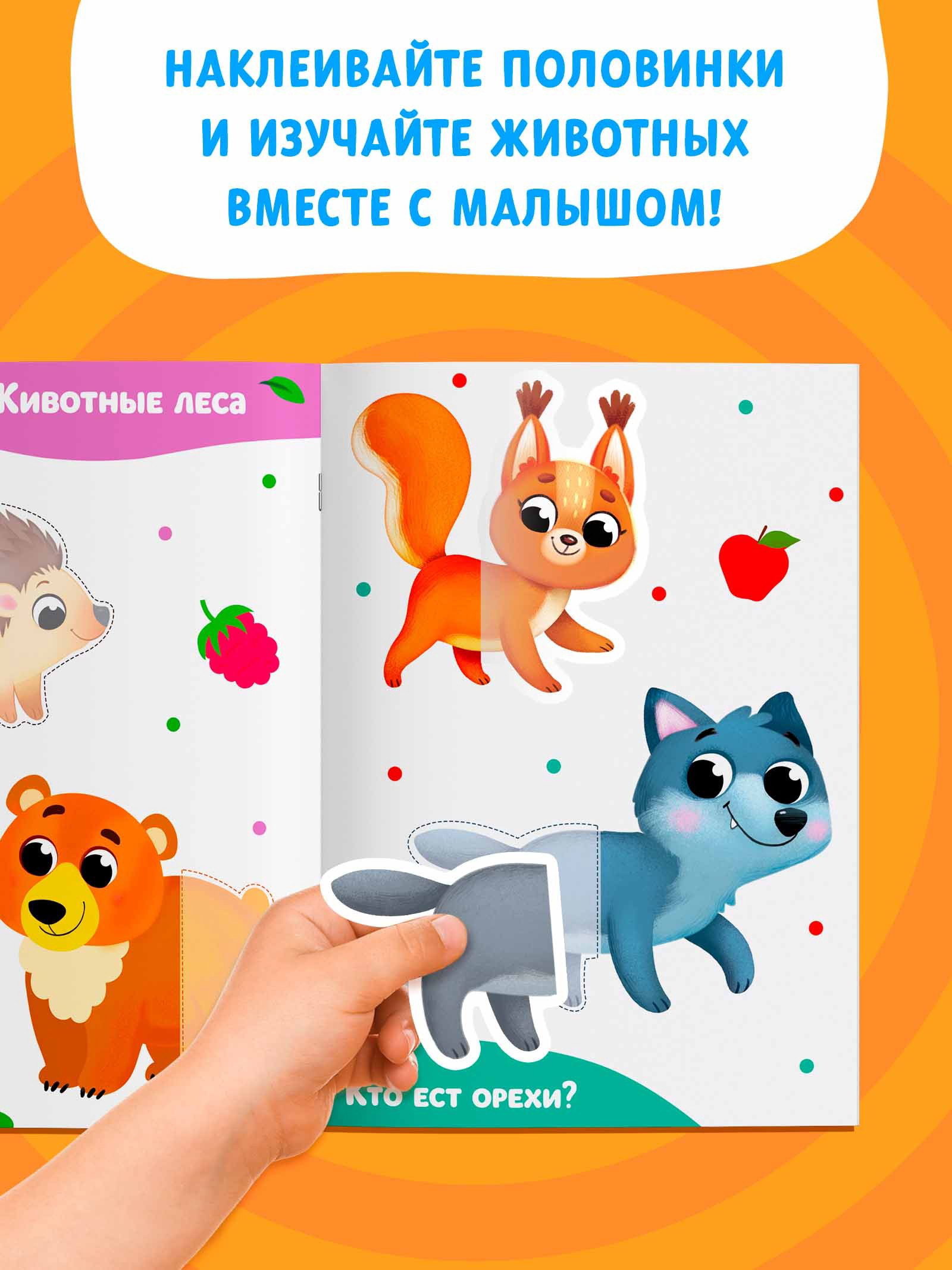 Дом Подарка › Каталог › Книги › Детские книги › Досуг и увлечения детей › Книжки с наклейками › Наклейки-половинки "Животные", 20 наклеек