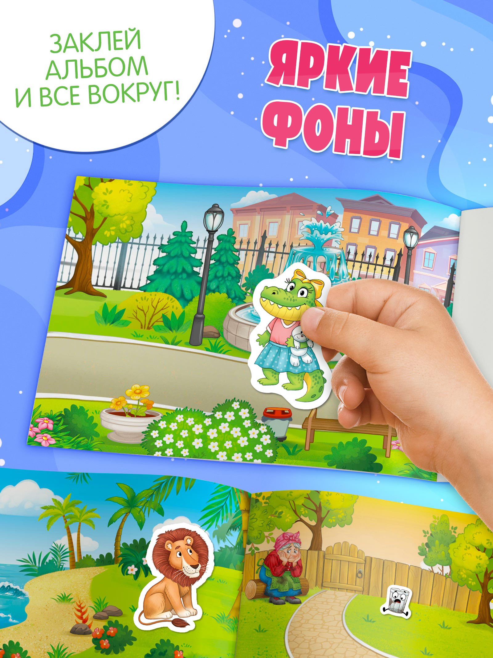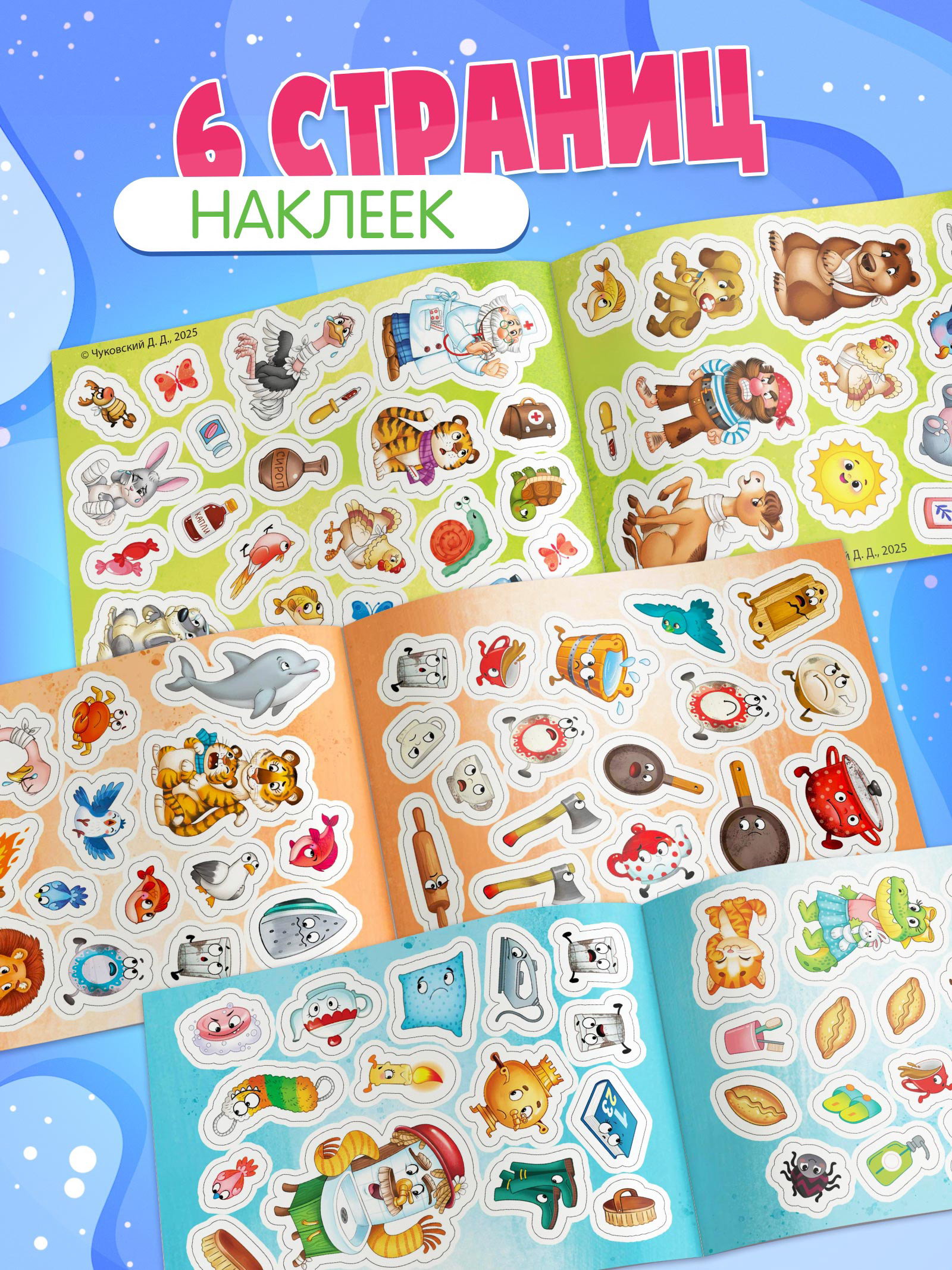 Размер упаковки: 15 x 0.2 x 21 см. tnved: 4903000000 Формат: А5 Набор: Нет Автор: Коллектив авторов Количество страниц: 8 Тип обложки: Мягкий переплёт Год издания: 2025 Мойдодыр, Айболит, Бармалей и другие персонажи ждут своего часа чтобы оказаться на странице, придумать историю или спасти крокодила от простуды. С 100 яркими наклейками ребёнок сам становится соавтором сказки: решает, кто где стоит, что происходит и чем всё закончится. Чем полезен альбом: