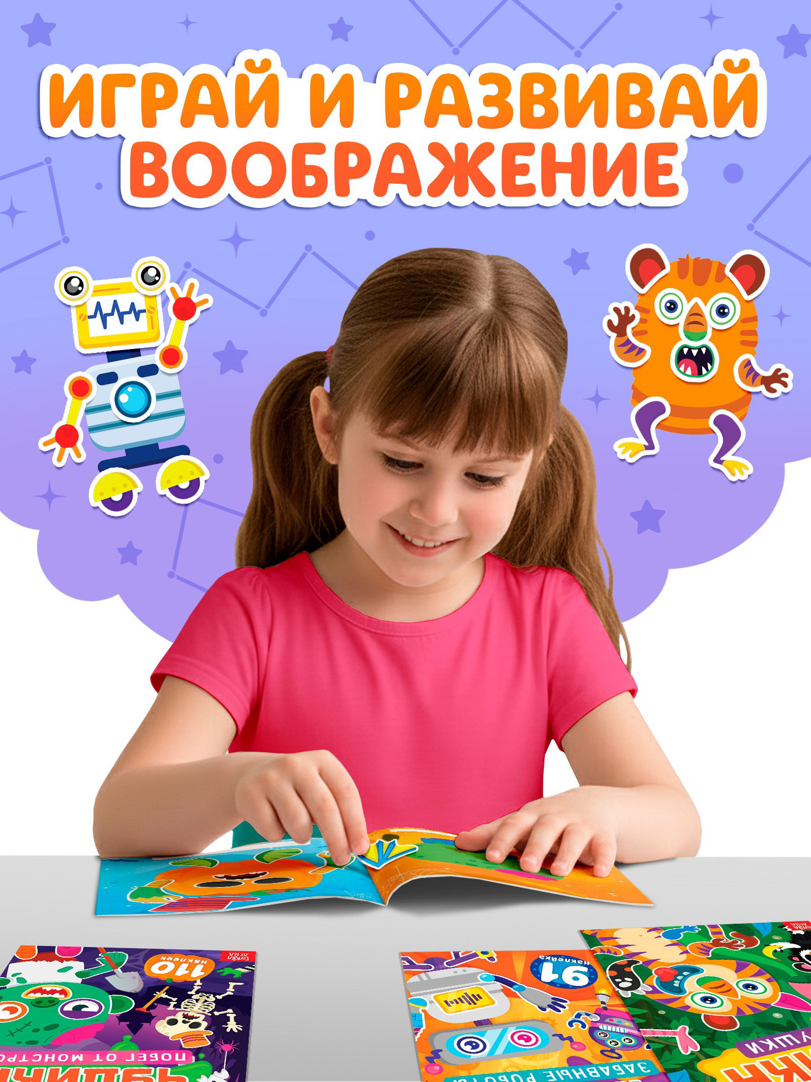 Книга с наклейками "Создай чудика. Привет из космоса", 101 наклейка, 24x17x0.3 см., БУКВА-ЛЕНД, Китай