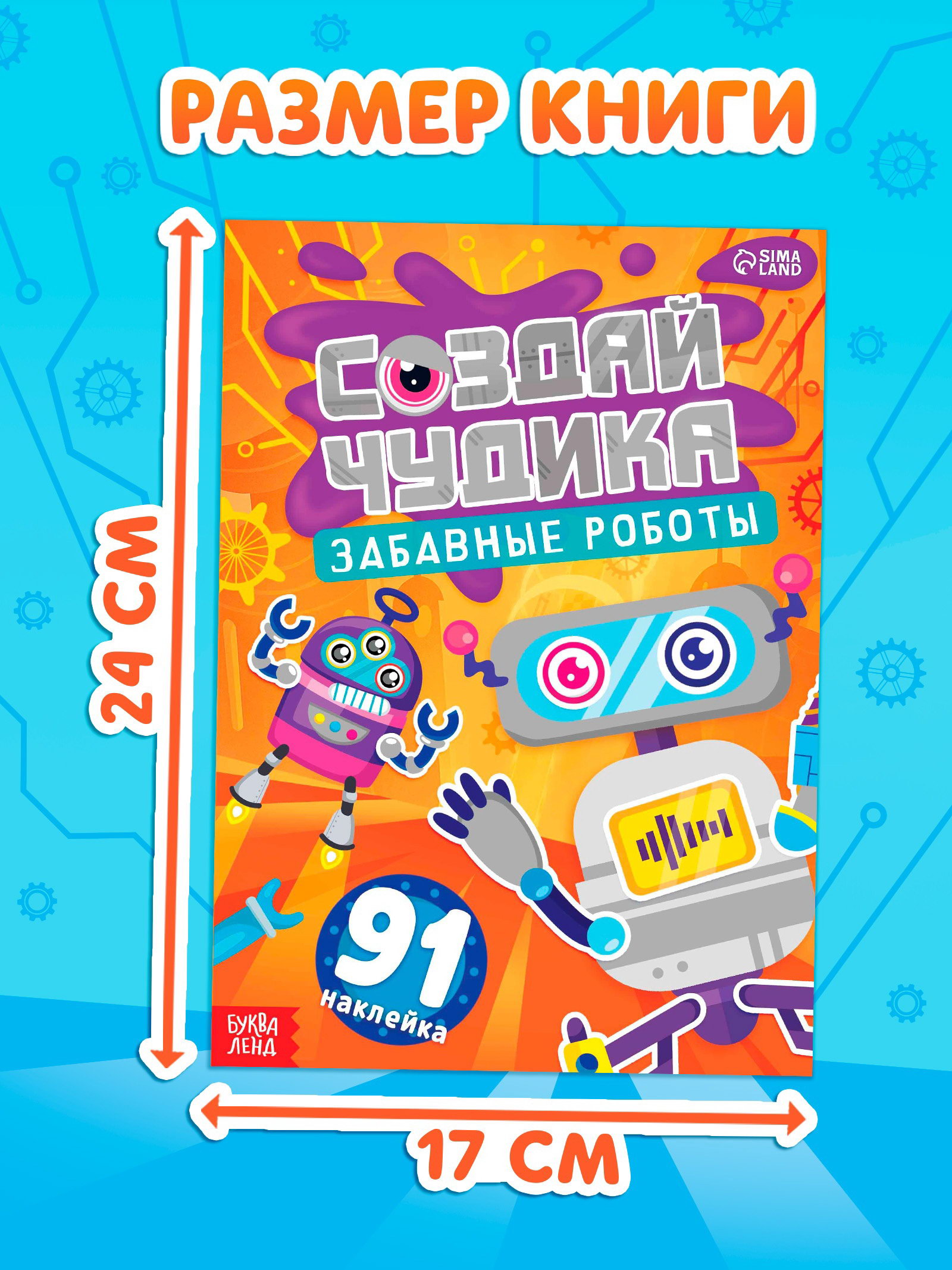 Книга с наклейками "Создай чудика. Забавные роботы", 91 наклейка, 24x17x0.3 см., БУКВА-ЛЕНД, Китай