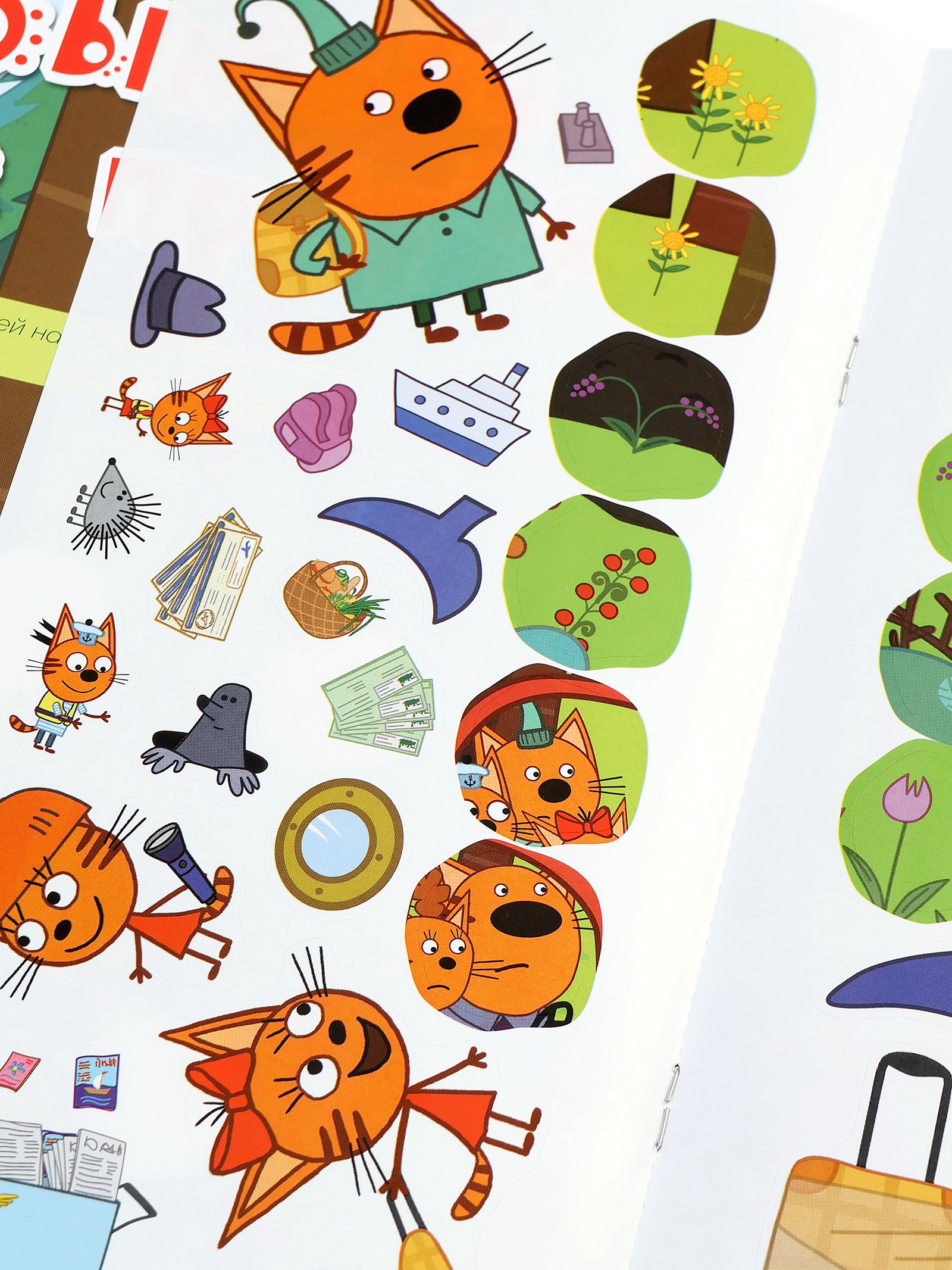 Книга с наклейками "Три кота. В путешествии", 8 стр., МОЗАИКА-СИНТЕЗ, Россия