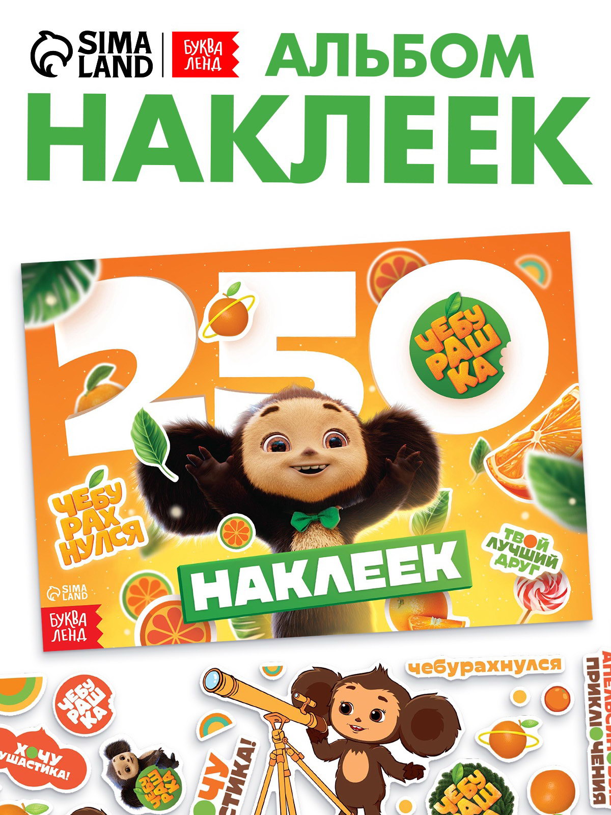 Альбом наклеек "Чебурашка", 250 наклеек, 24x0.1x17 см., ЧЕБУРАШКА, Китай