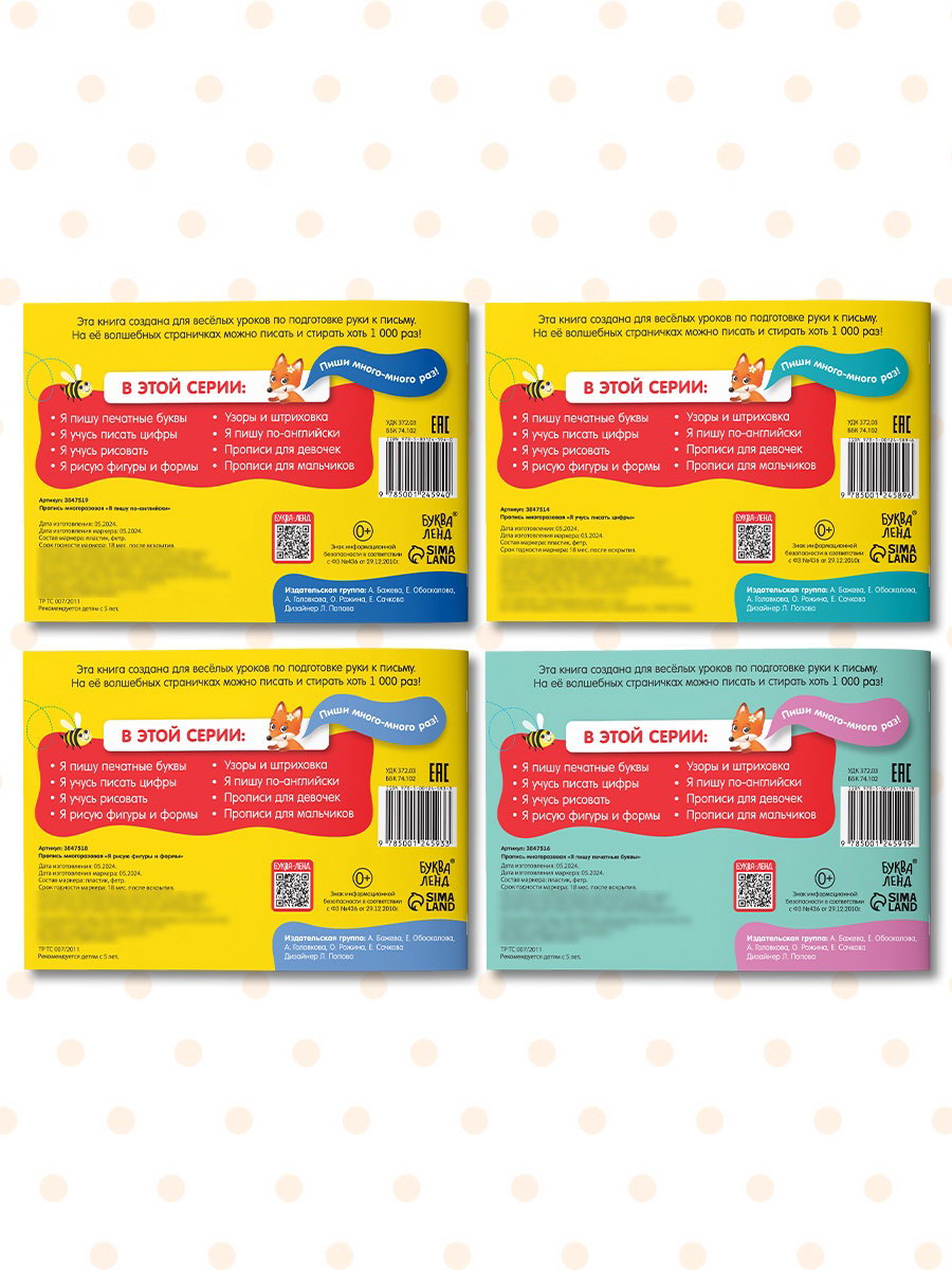 Прописи многоразовые с маркером набор 4 шт. №1, 12 стр., 2x19x14 см., БУКВА-ЛЕНД, Китай