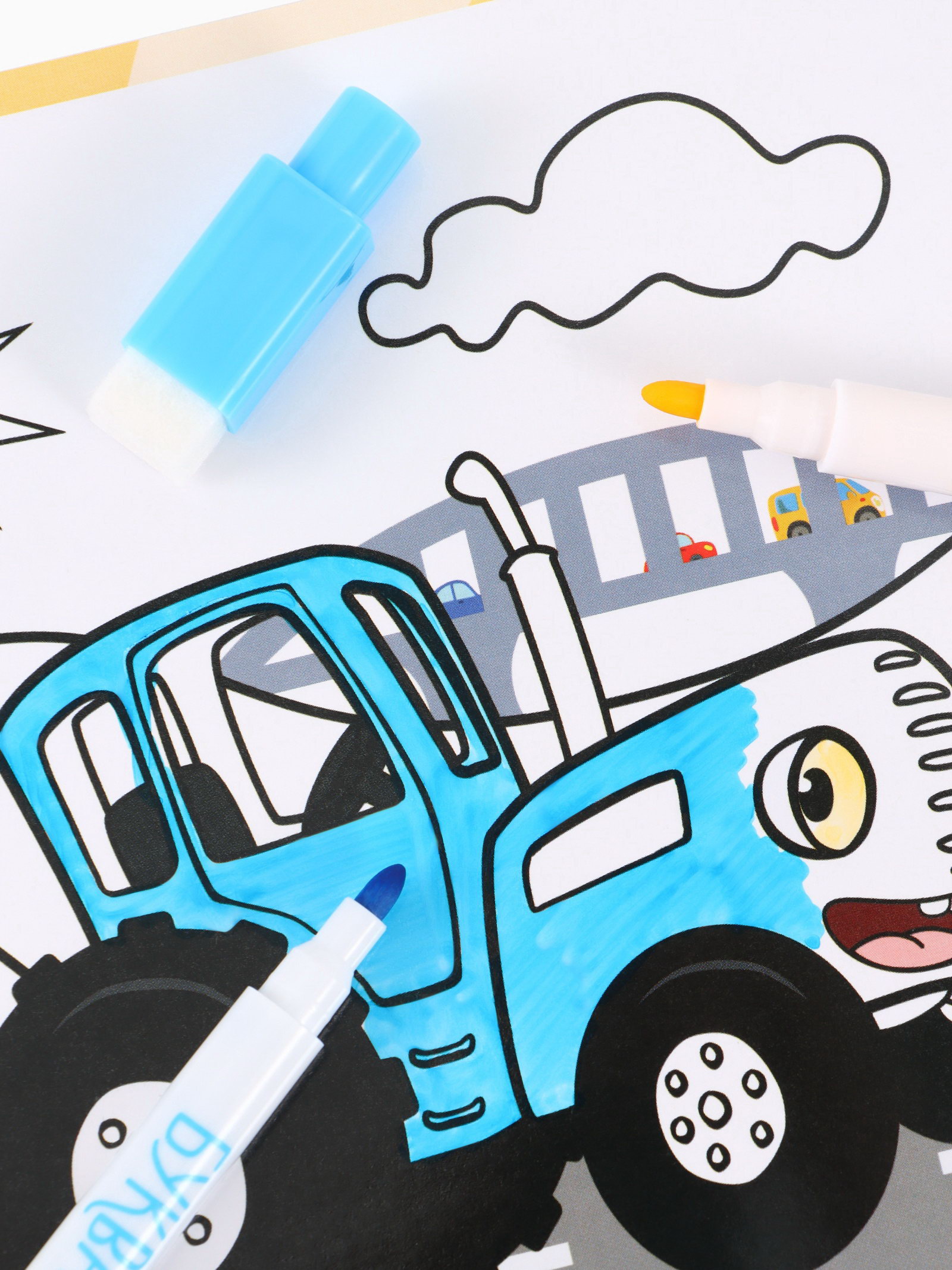 Как это работает? Ребёнок выбирает маркер и начинает раскрашивать картинки, создавая свои собственные истории с героями "Синего трактора". После завершения можно стереть рисунок с помощью губки на колпачке маркера и начать заново. Это помогает развивать внимание к деталям, координацию движений и творческое мышление. Знакомые персонажи добавляют радости и поддерживают интерес к процессу. Это похоже на "бесконечное путешествие", где каждая раскраска становится новым этапом приключений. Благодаря простой и продуманной структуре обучение становится естественным и приятным. Почему стоит выбрать эту раскраску?