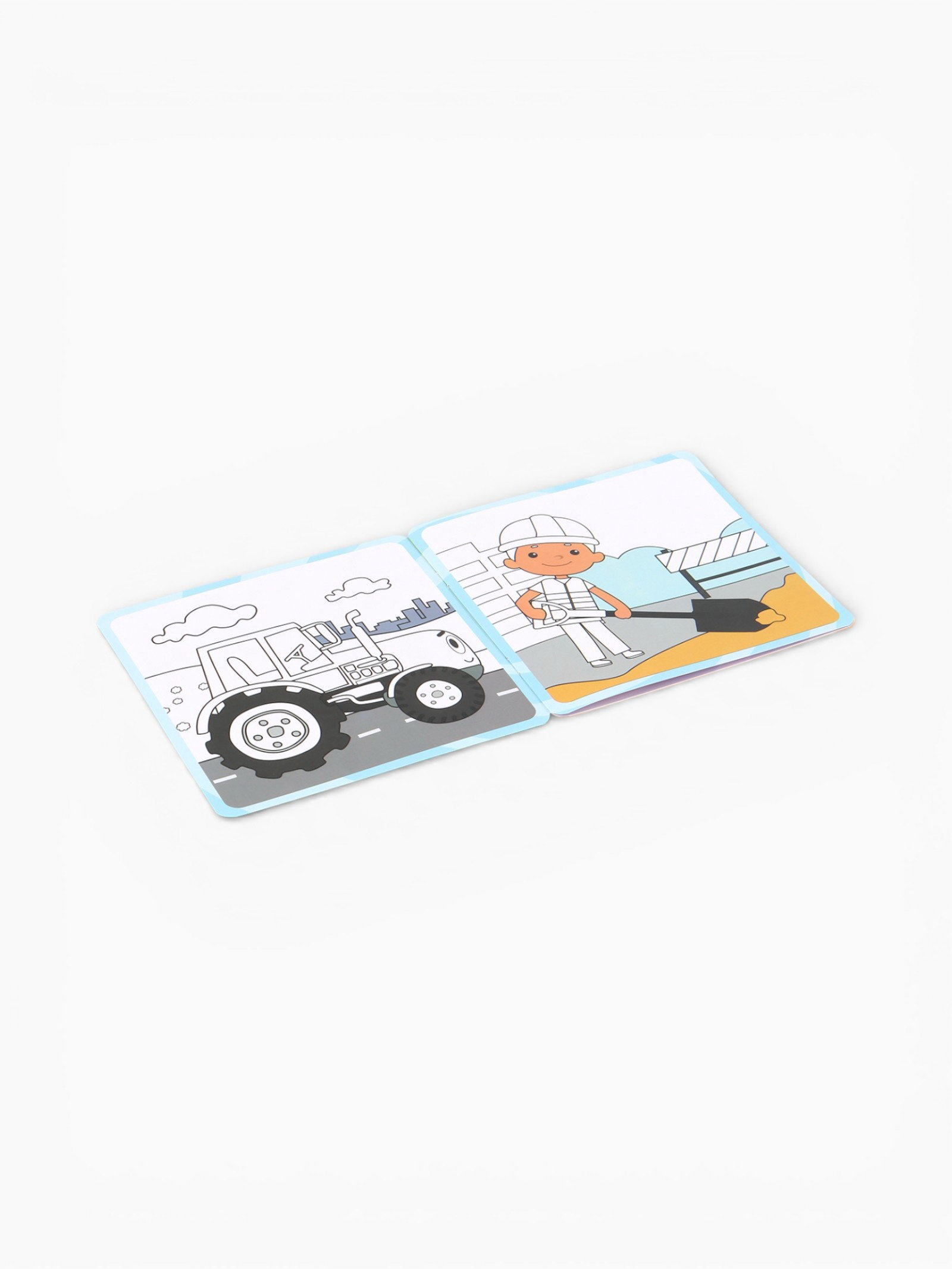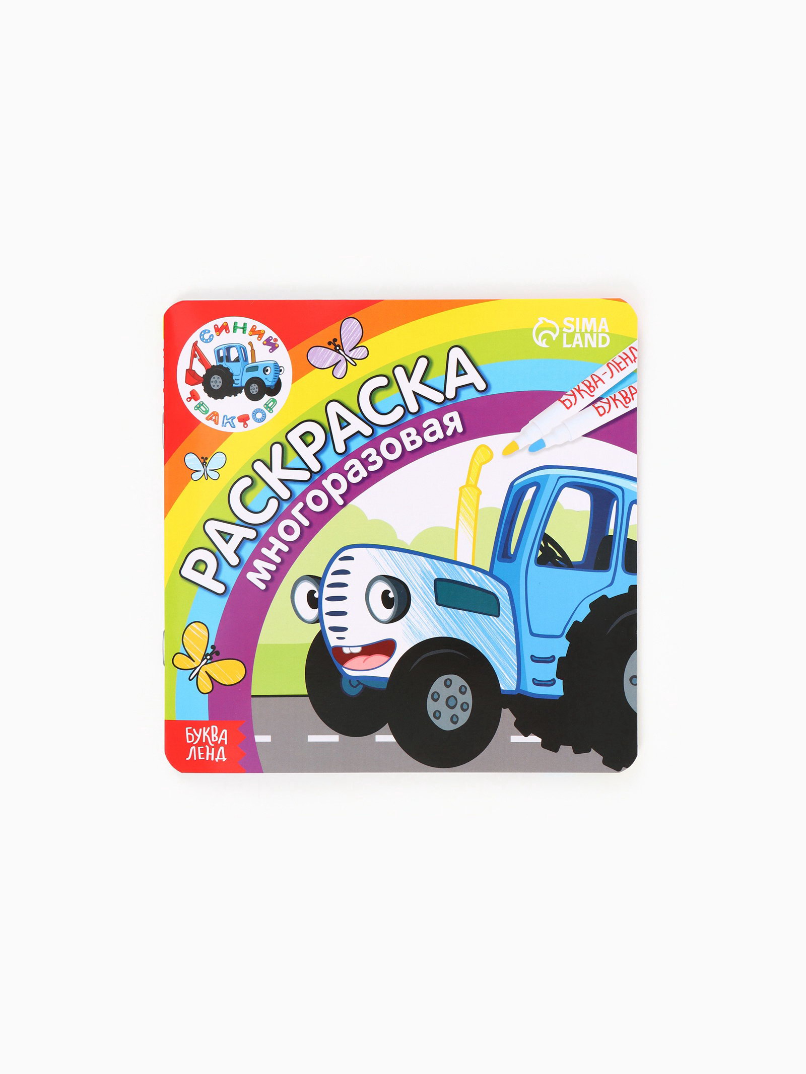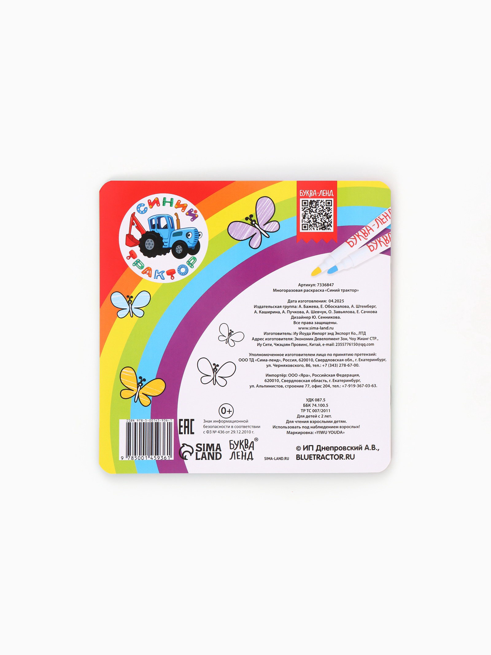 Многоразовая раскраска "Едет к нам", 12 стр., 16x16 см, 16x16x1 см., Синий трактор, Китай