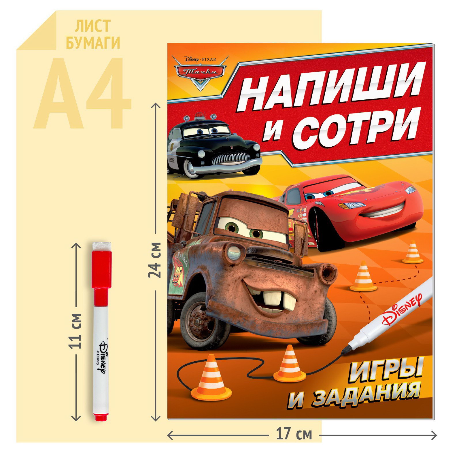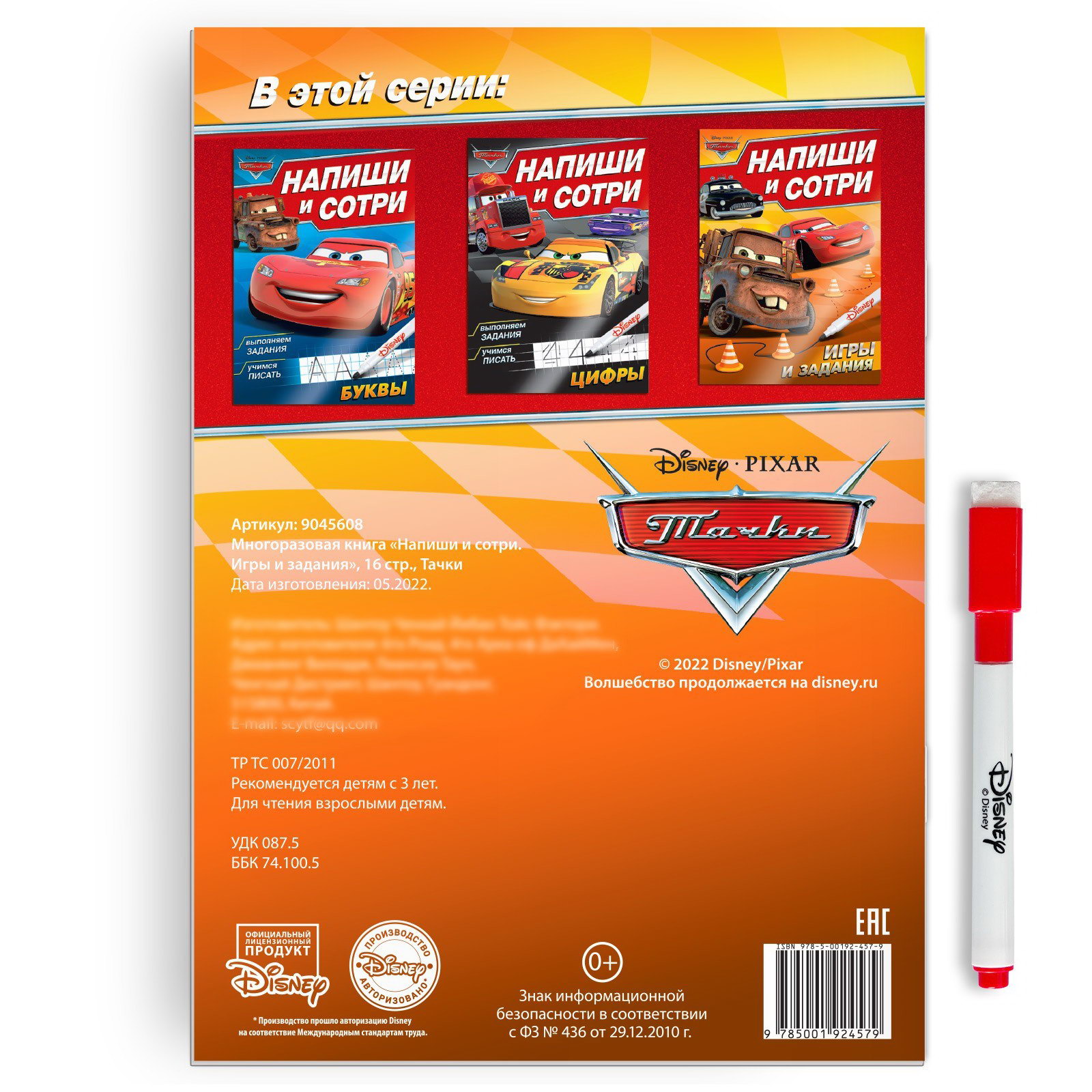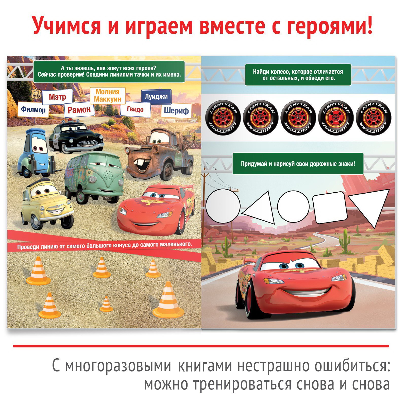 Многоразовая книга "Напиши и сотри. Игры и задания", 16 стр., 17 x 24 см, + маркер, Тачки, 24x17x0.5 см., Disney, Китай