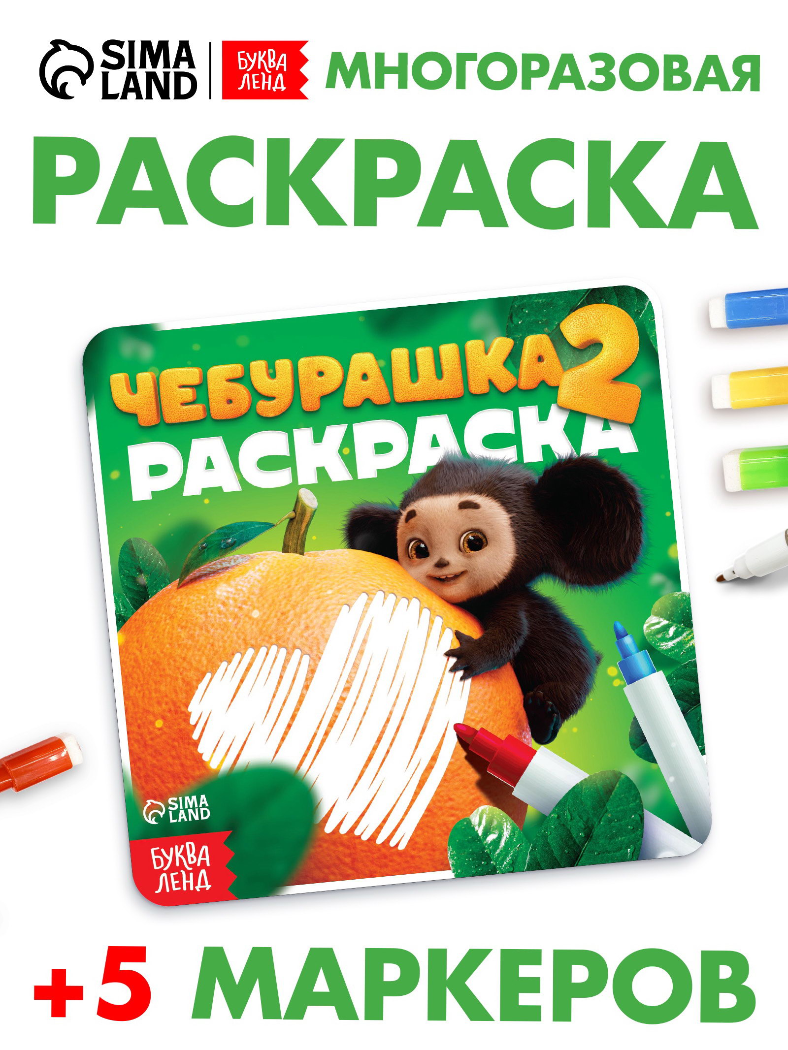 Раскраска многоразовая 16x16 см, с маркерами, 12 стр., 16x0.1x16 см., ЧЕБУРАШКА, Китай