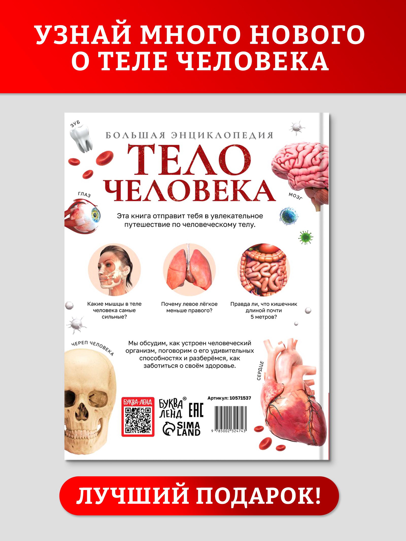 Энциклопедия в твёрдом переплёте "Строение тела человека", 128 страниц., 21x27.5x1.5 см., БУКВА-ЛЕНД, Россия