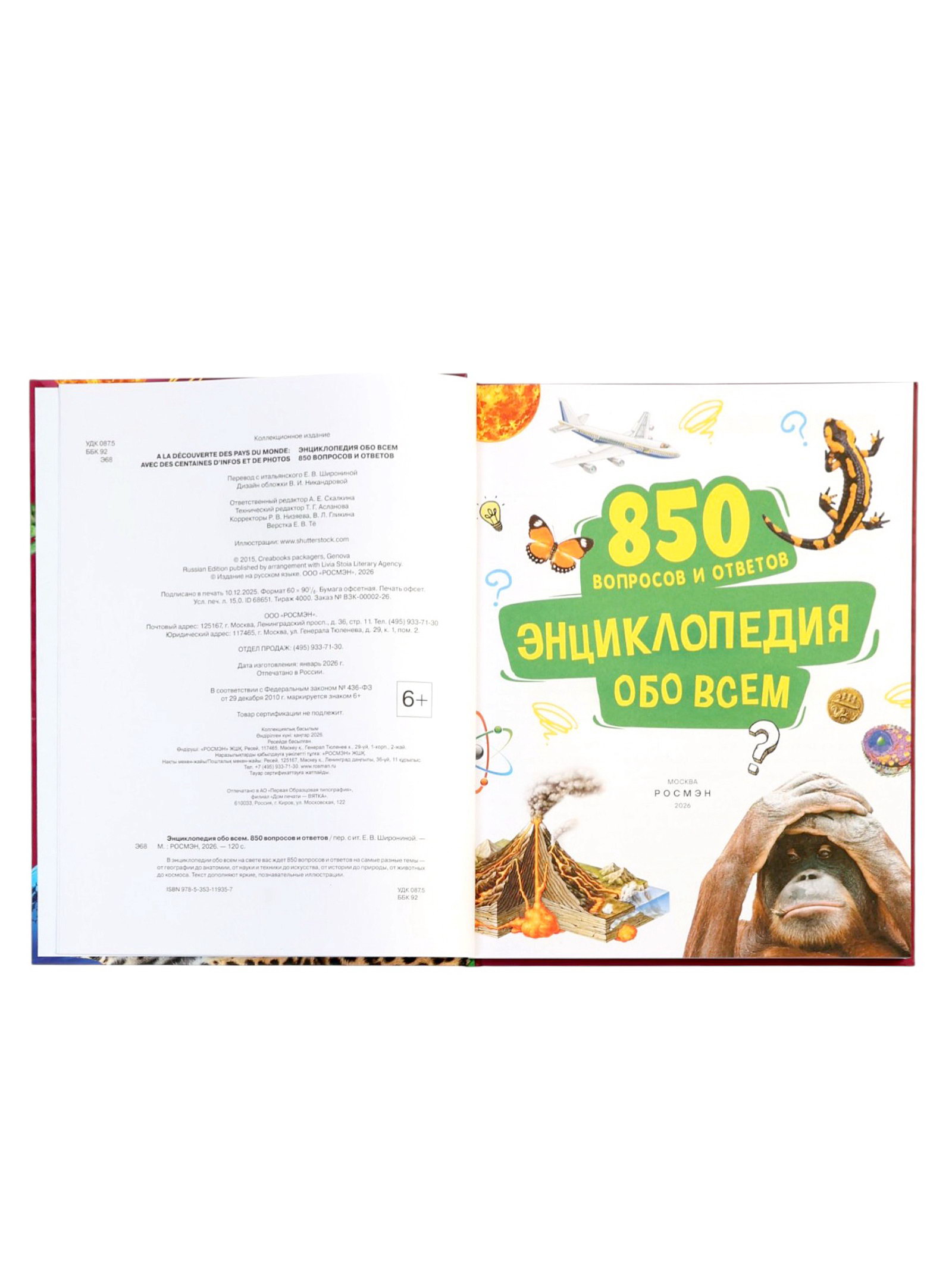 Энциклопедия обо всем в твёрдом переплёте "850 вопросов и ответов", 120 стр., Росмэн, Россия
