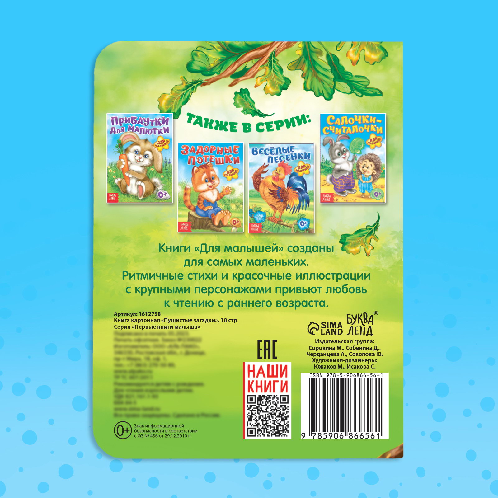 Возраст: Для детей, От 1 года Размер упаковки: 11 x 0.5 x 15 см. Тип: Классическая Автор: Нет автора Язык издания: Русский Язык издания: Русский tnved: 4903000000 Формат: А6+ Количество страниц: 10 Набор: Нет Книжки серии "Для малышей" это первые помощники ребёнка в изучении окружающего мира. Они сделаны из картона, поэтому будут долго служить подрастающим детям. В книге собраны загадки про животных. В каждом стихотворении рассказывается о разных признаках и повадках лесных зверушек. Ребёнок в игровой форме запомнит, что лиса рыжая и хитрая, а заяц трусливый и меняет с приходом зимы шерстку. С яркими картинками будет проще находить соответствия, а содержание станет более наглядным. | ||
