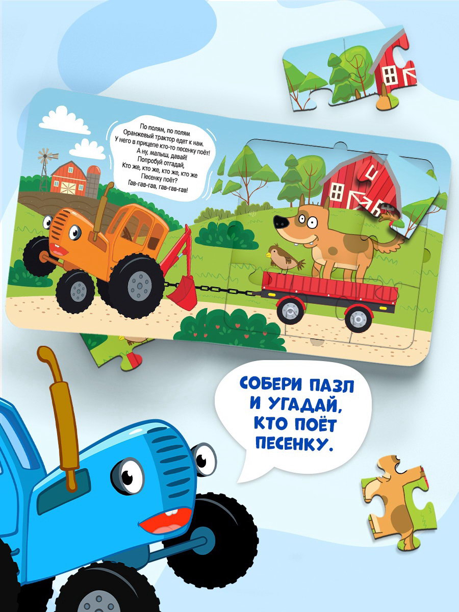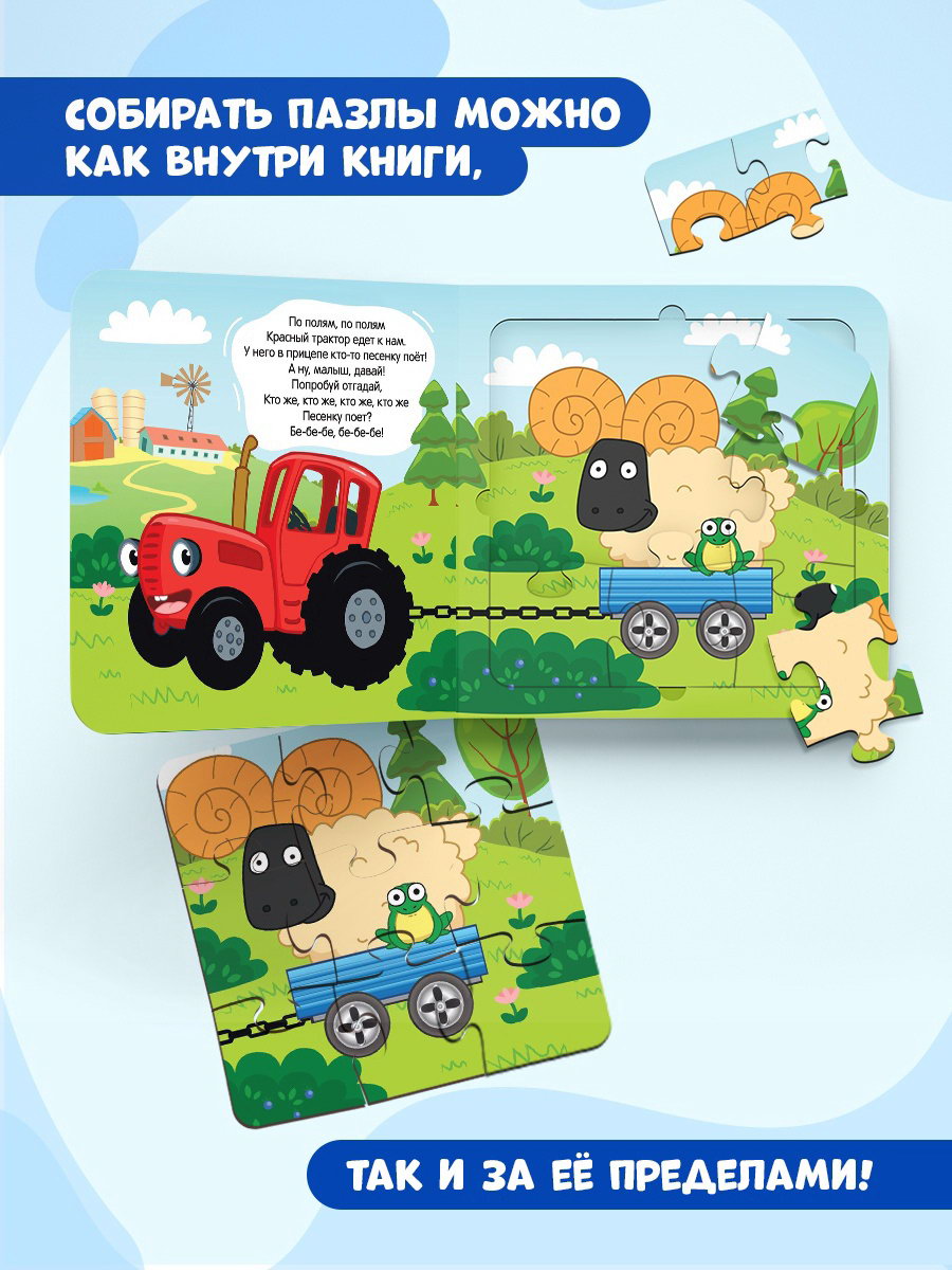 Книга картонная с пазлами "По полям, по полям!", Синий Трактор, 12 стр., 16x16x1.3 см., Синий трактор, Китай