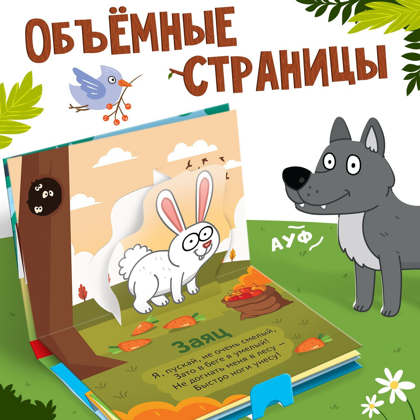 Книжка-панорамка 3D "Лесные зверята", 12 стр., Синий трактор, Россия