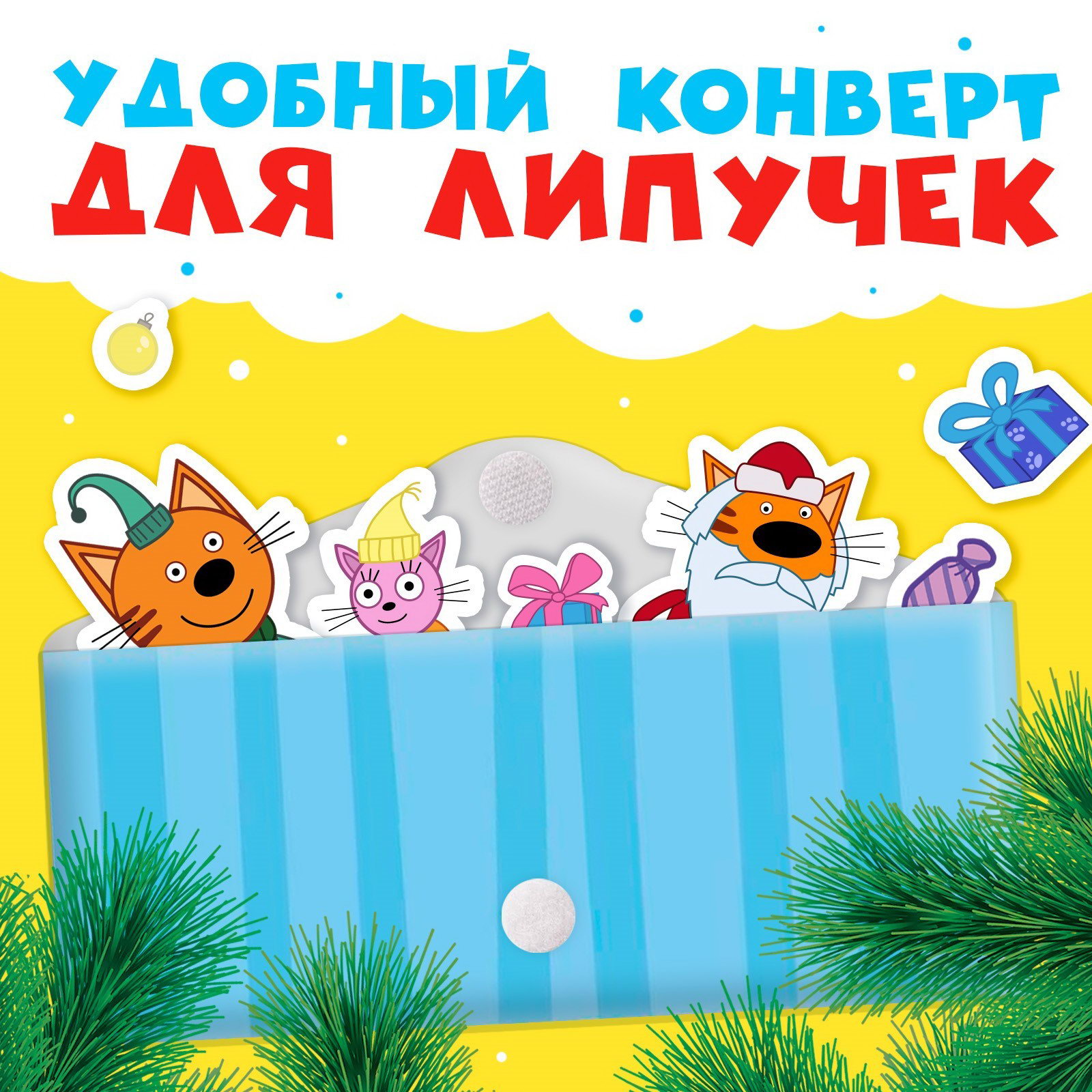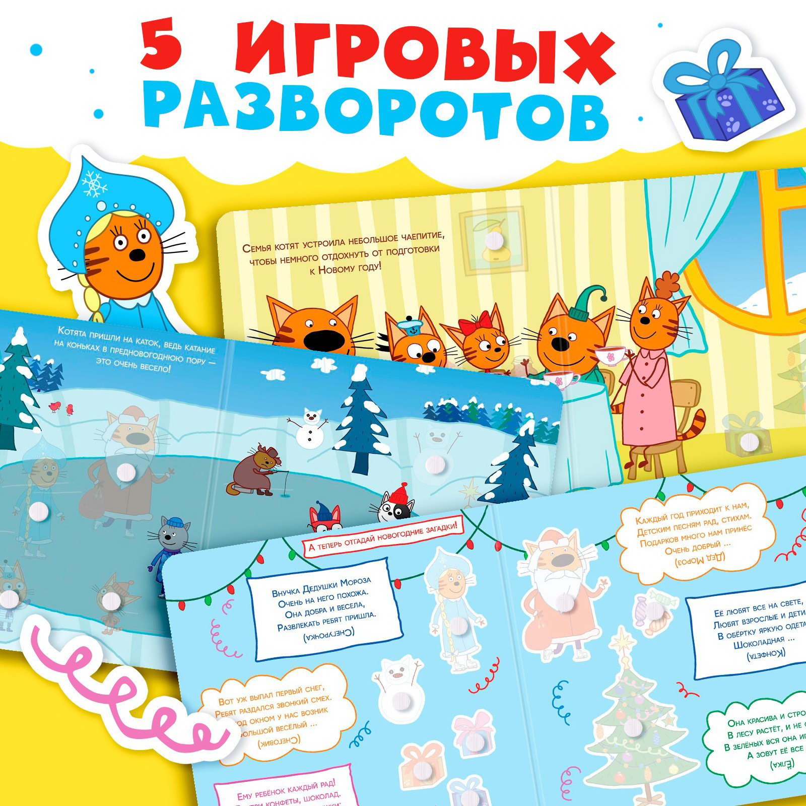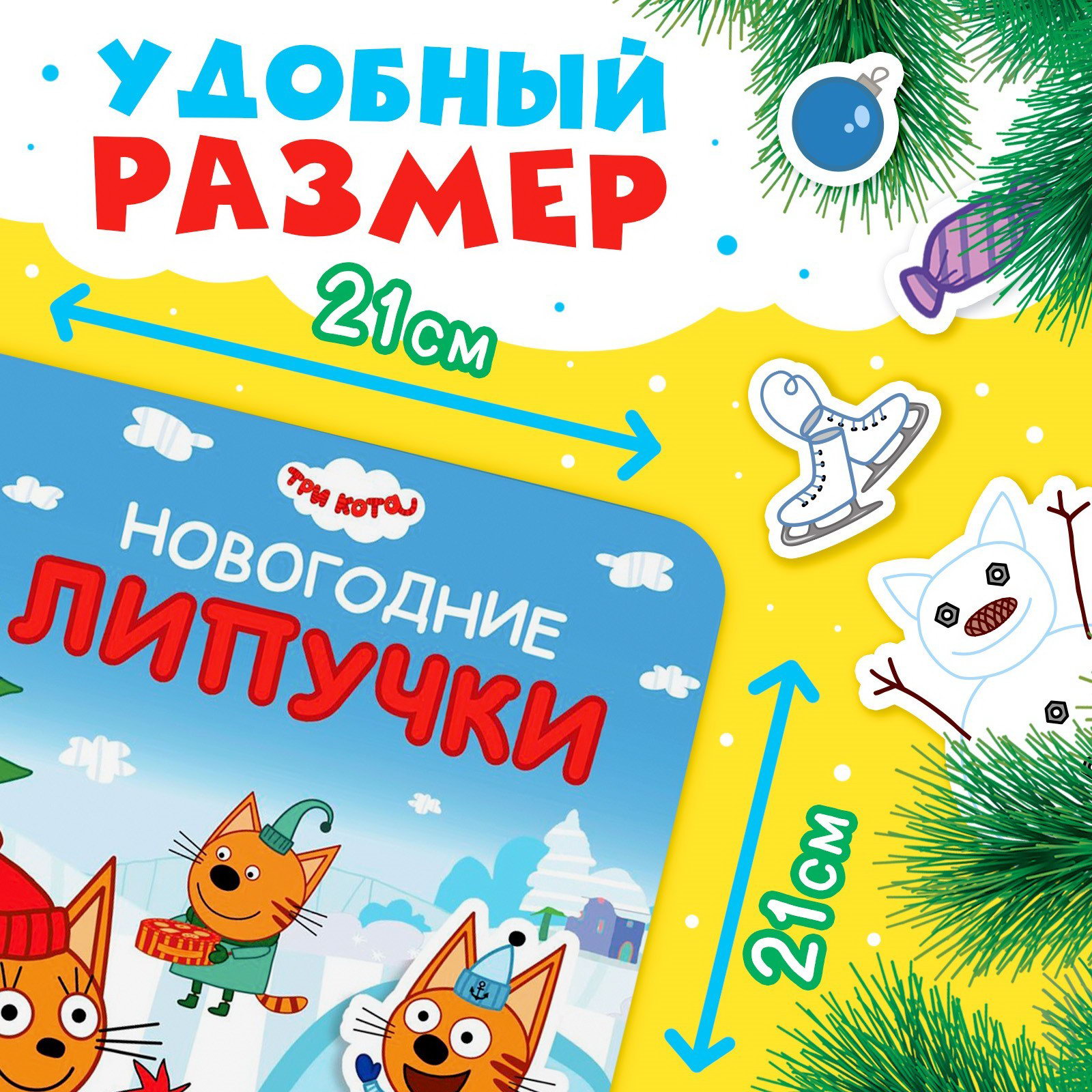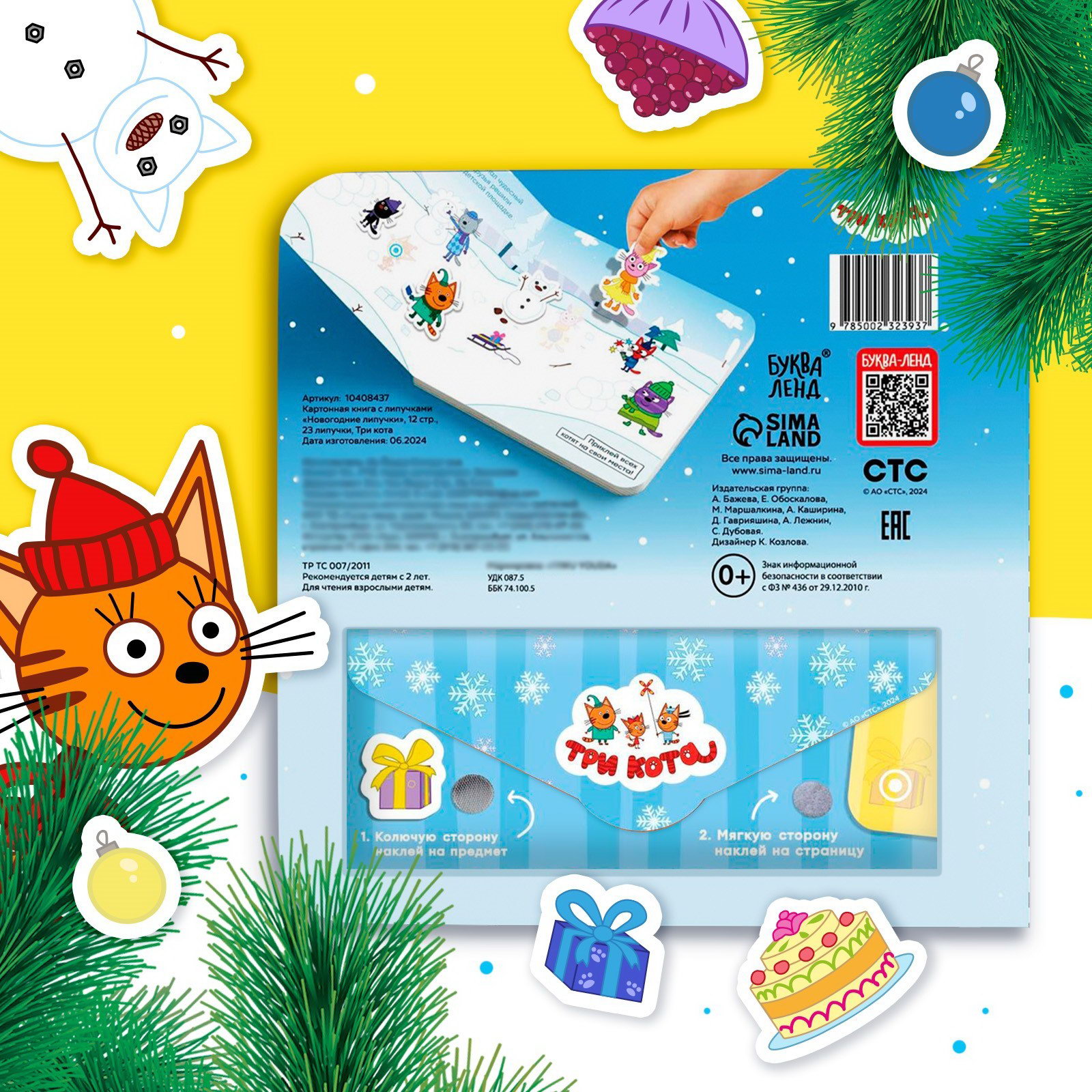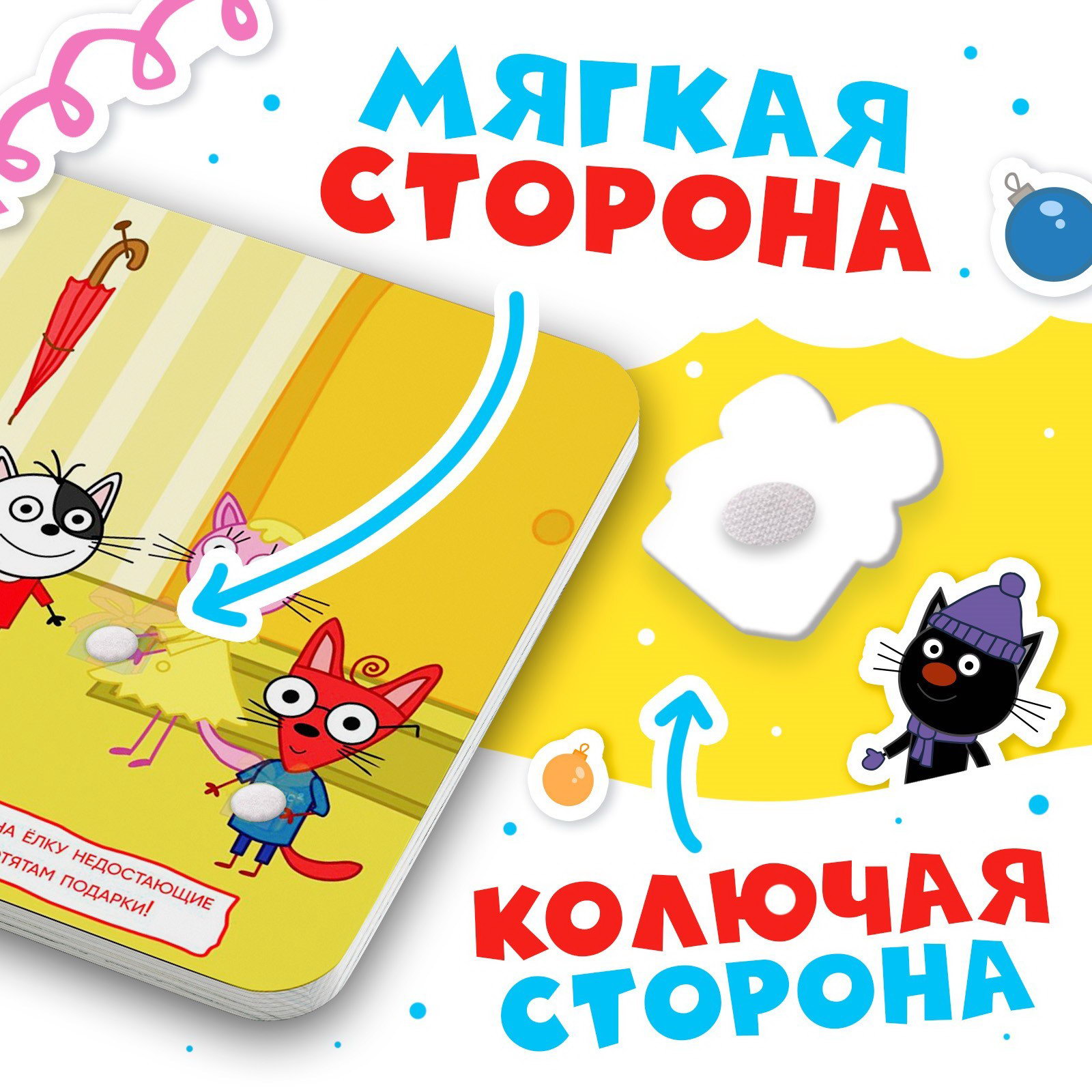 Книга картонная с липучками "Новогодние липучки", 12 стр., 18x22x1.5 см., Три кота, Китай