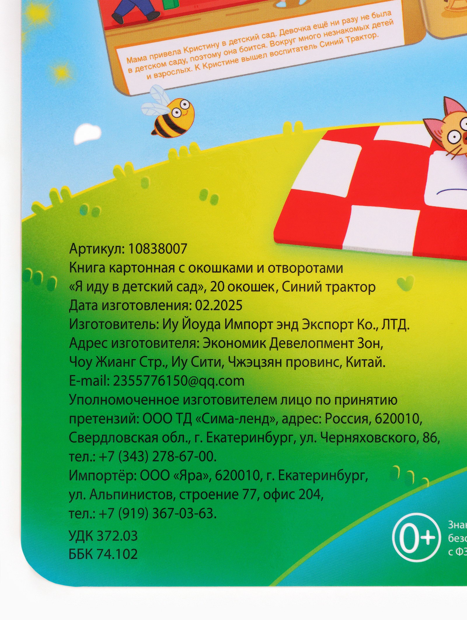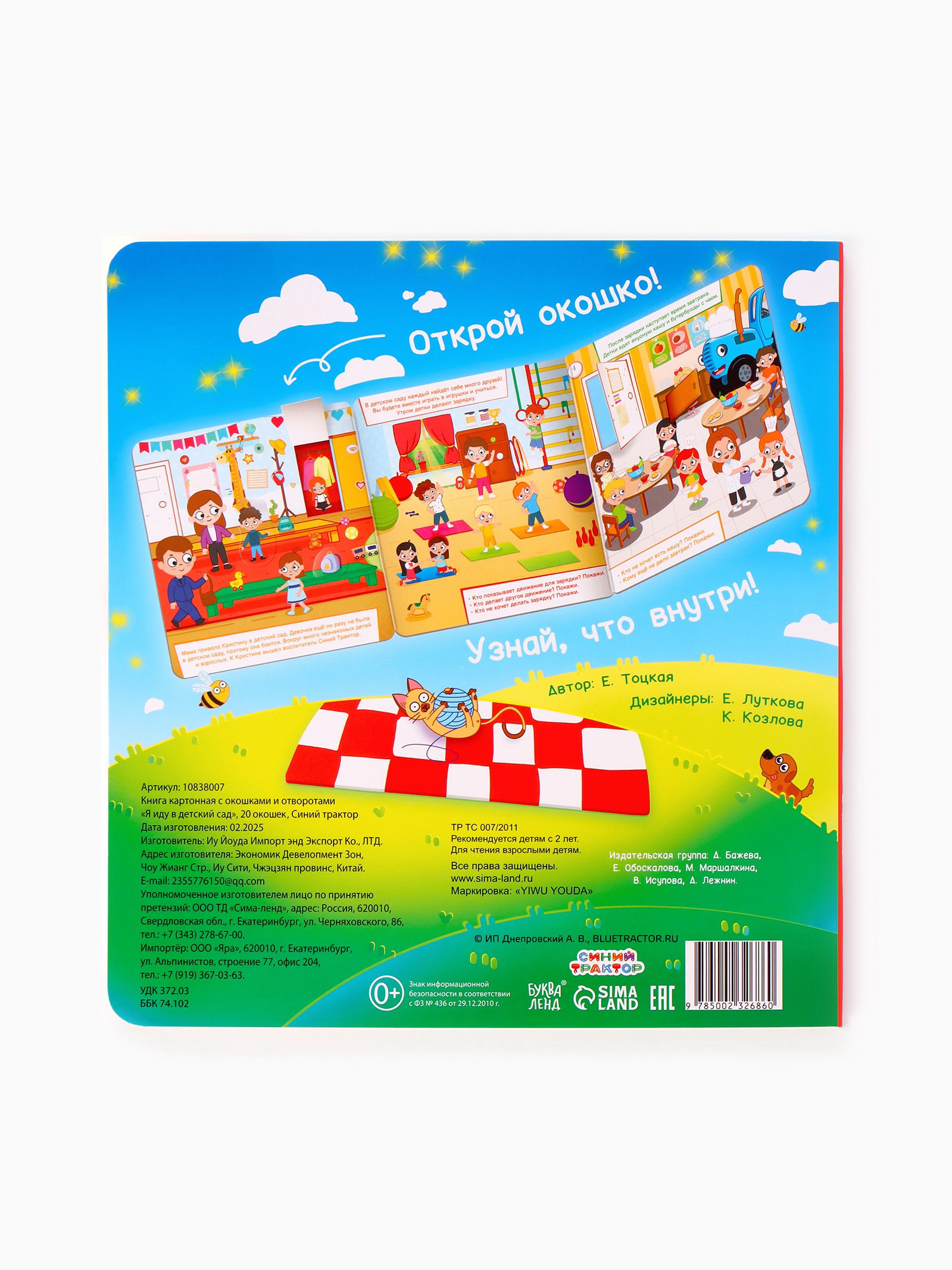 Книга картонная с окошками и отворотами "Я иду в детский сад", 20 окошек, 22.5x24x0.8 см., Синий трактор, Россия