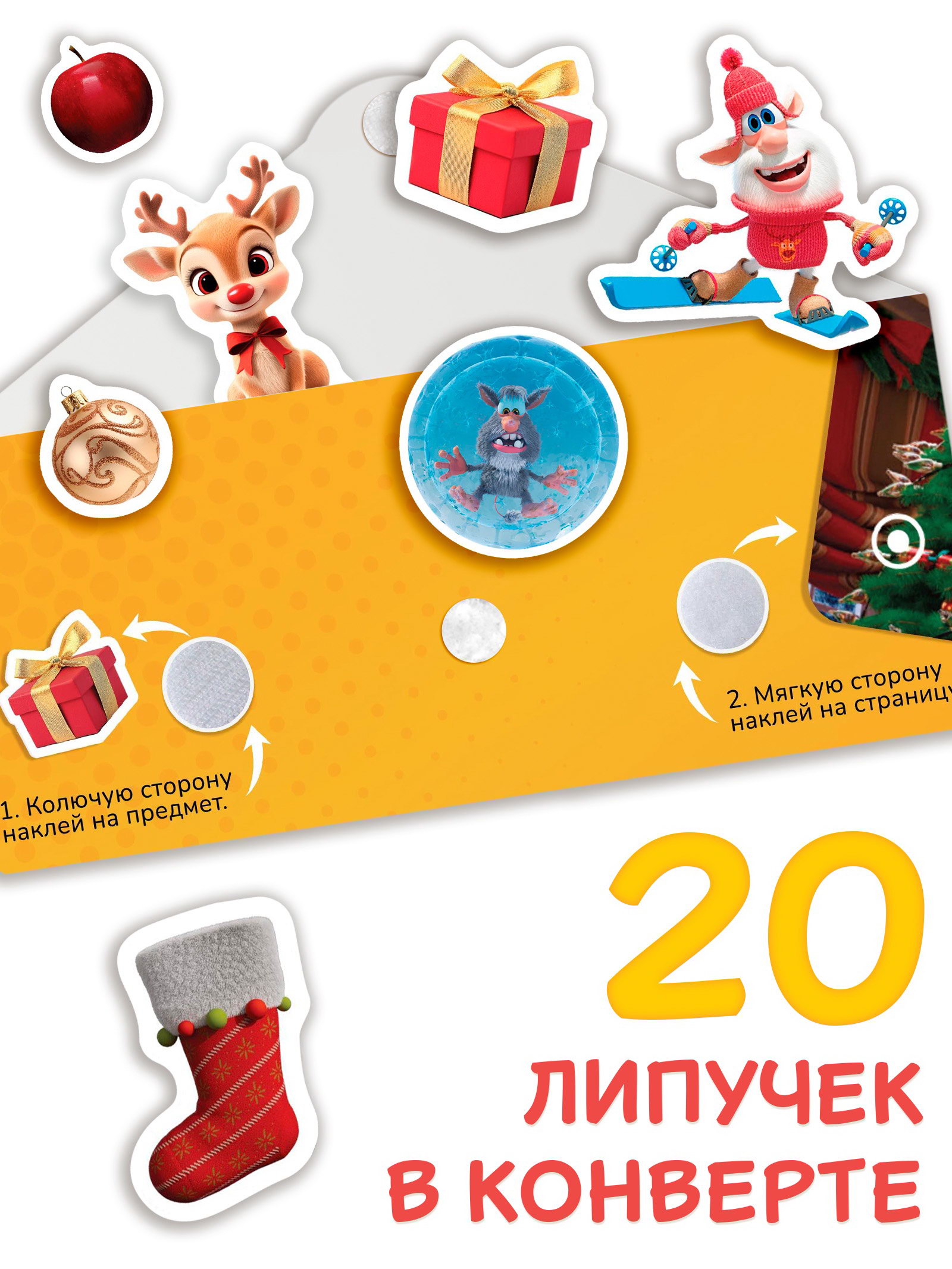 Обучение через игру Эта книга помогает ребёнку погрузиться в атмосферу Нового года, выполняя задания с любимым героем Буба. Ребёнок словно становится участником весёлых приключений, украшая ёлку, собирая подарки или создавая праздничные истории. Это напоминает маленький театр, где каждая липучка это актёр, который помогает создать уникальную сцену. Процесс не только увлекает, но и развивает важные навыки: