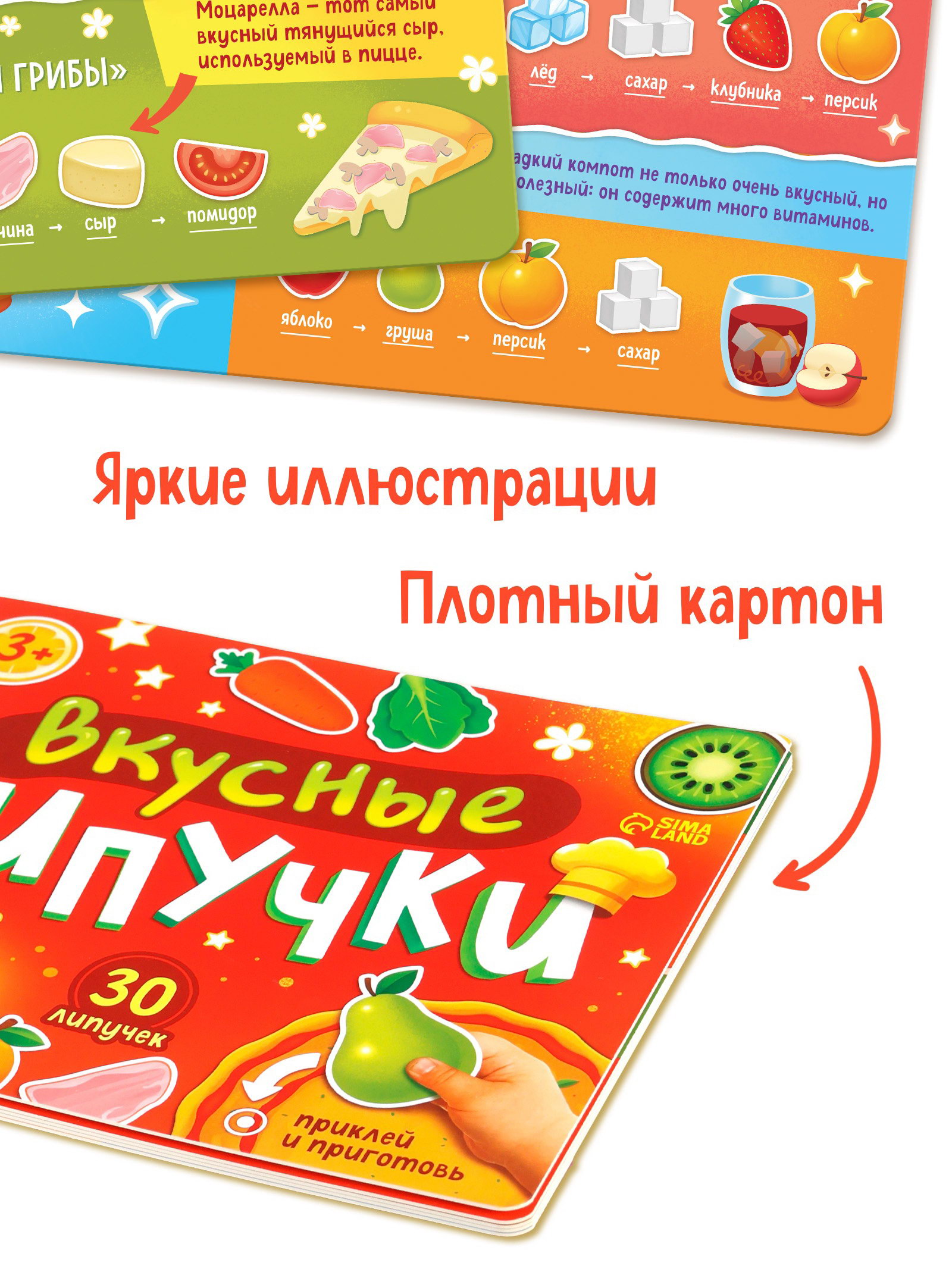 Книга детская "Вкусные липучки", 30 липучек, 18x22x1.5 см., БУКВА-ЛЕНД, Китай