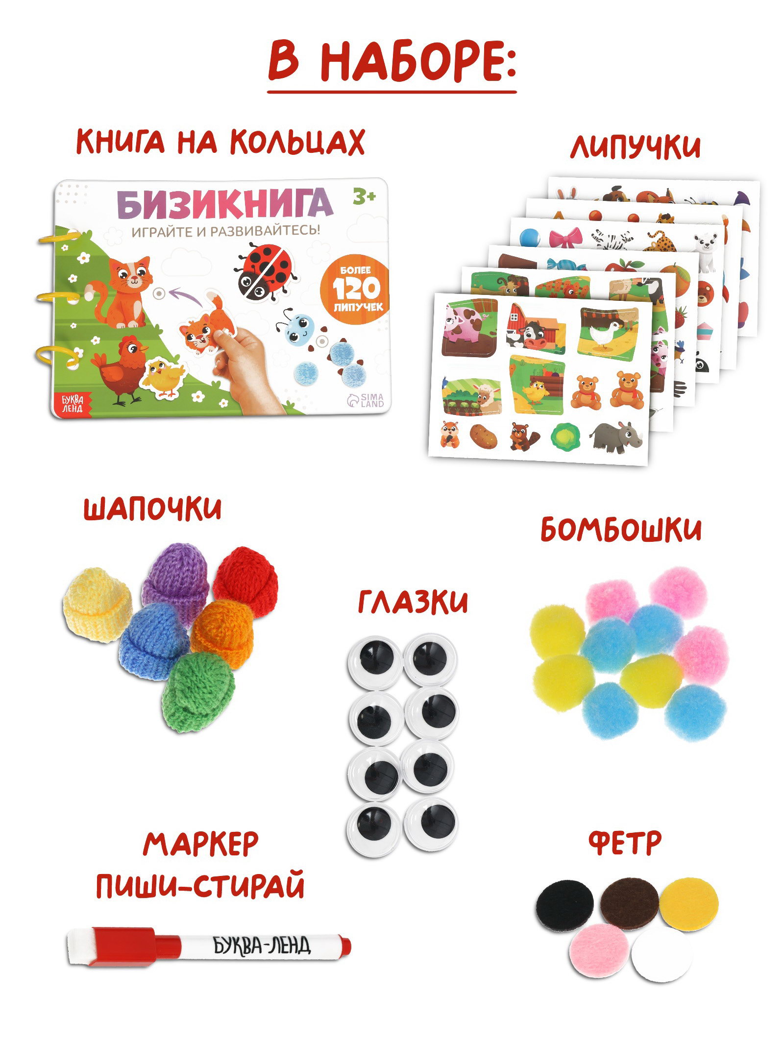 Подарочный набор "Большая развивающая книга", 128 липучек, маркер, 33x4x23 см., БУКВА-ЛЕНД, Китай