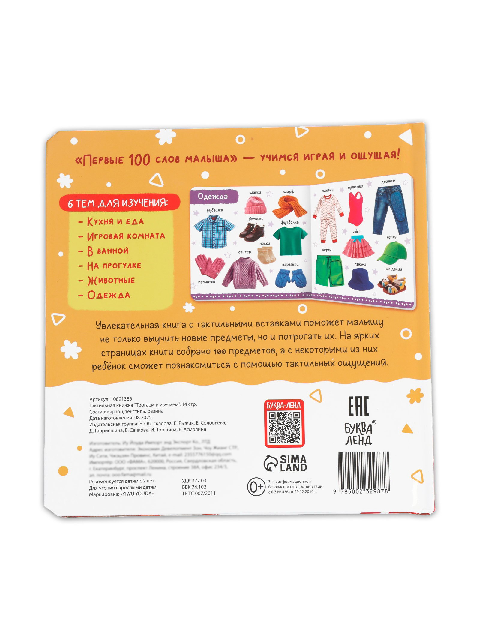 Тактильная книжка "Трогаем и изучаем", 12 стр., 19x1x19 см., БУКВА-ЛЕНД, Китай