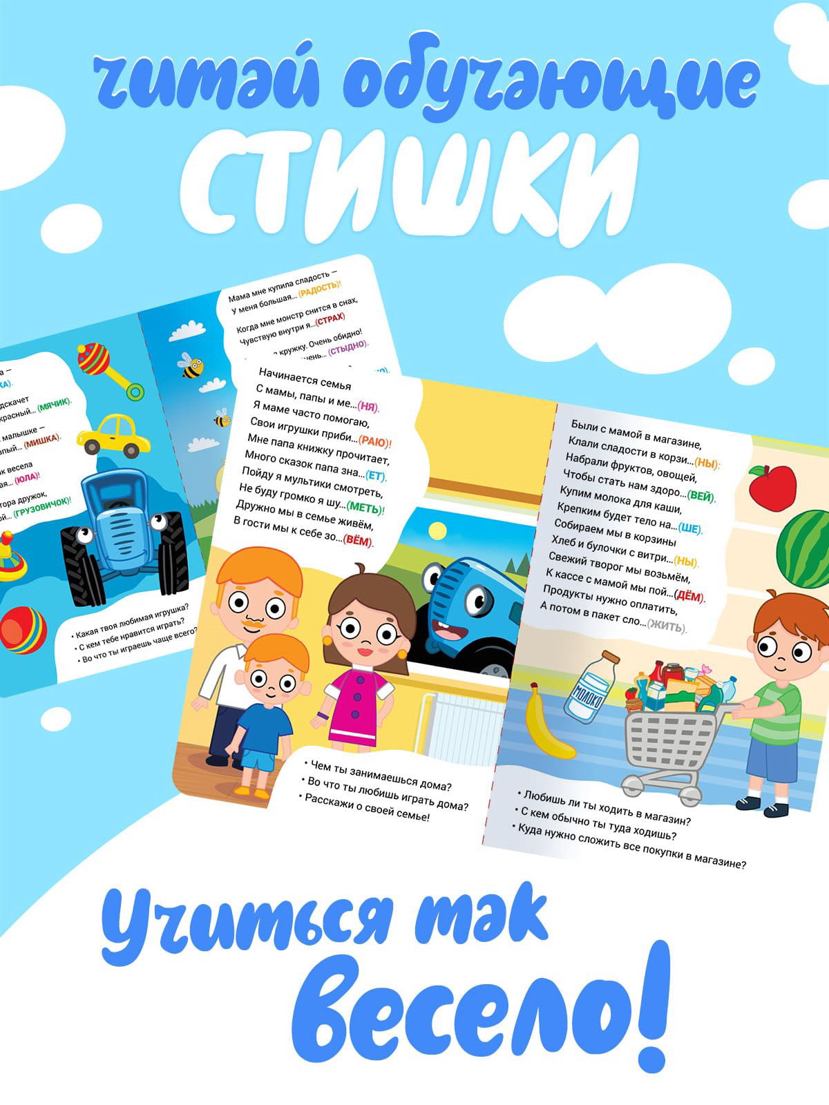 Набор картонных книг "Стихи-болтушки.", 4 шт. по 10 стр., А5, 21x14.8x2 см., Синий трактор, Китай