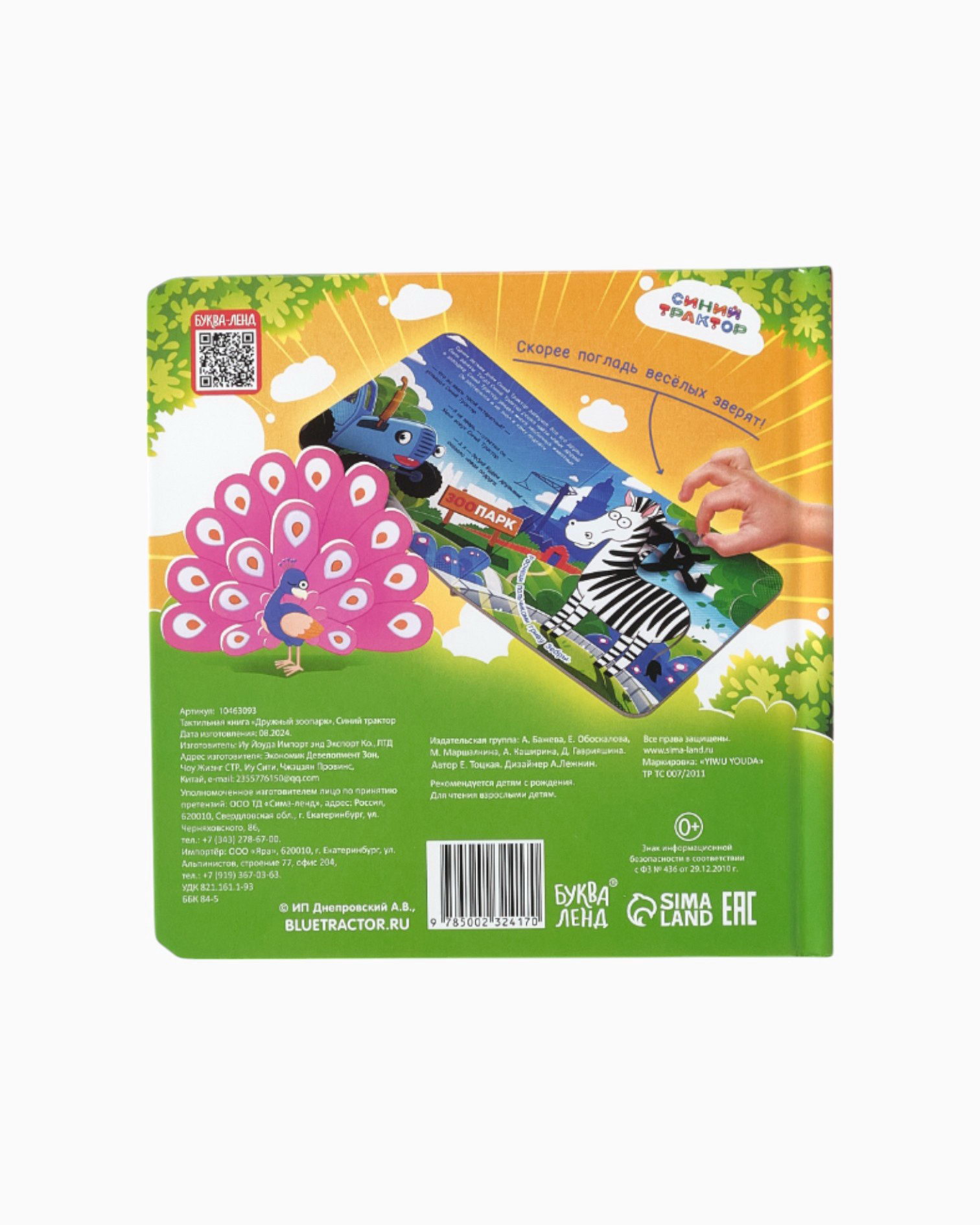 Тактильная книжка "Дружный зоопарк.", 17x17x1 см., Синий трактор, Китай