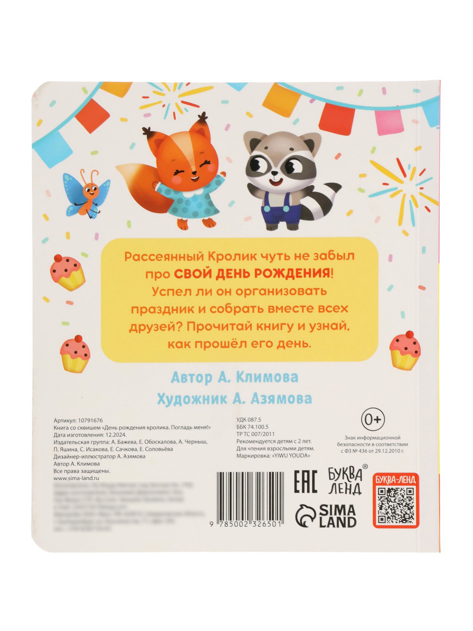 Книга со сквишем "День рождения кролика. Погладь меня!", 22x19x2.5 см., БУКВА-ЛЕНД, Китай