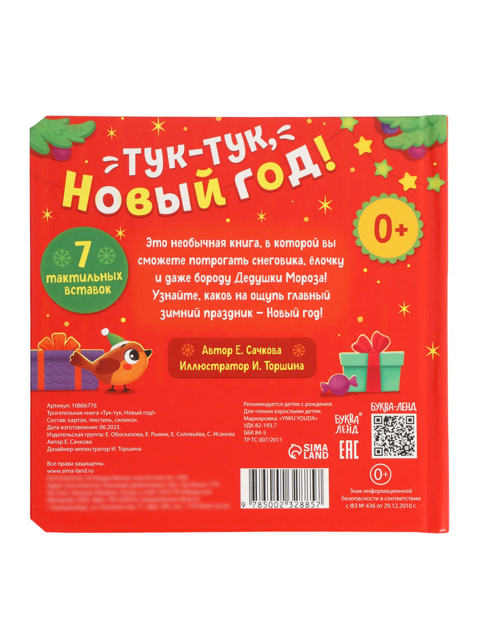 Трогательная книга "Тук-тук, Новый год!", 17x2x17 см., БУКВА-ЛЕНД, Китай