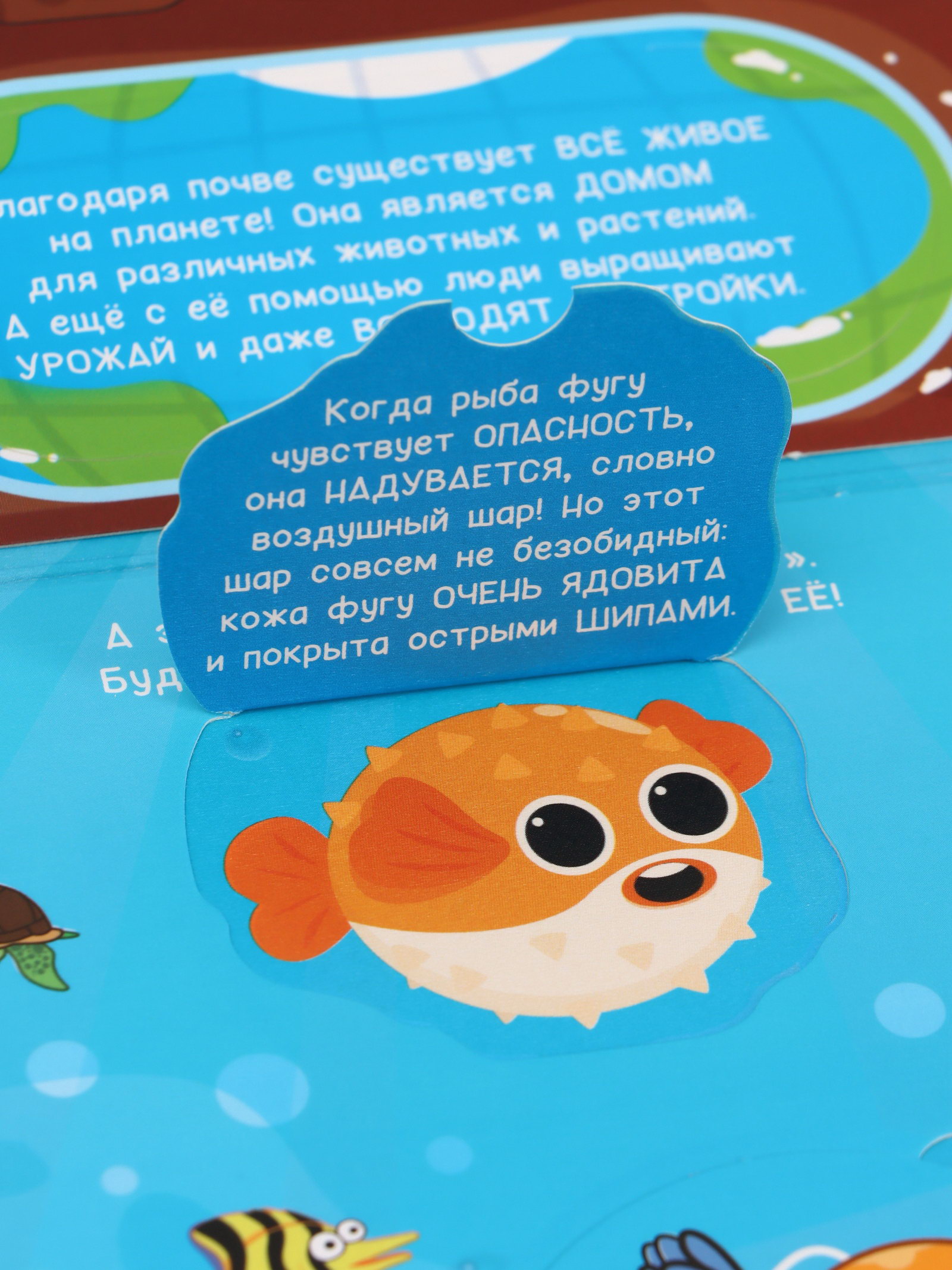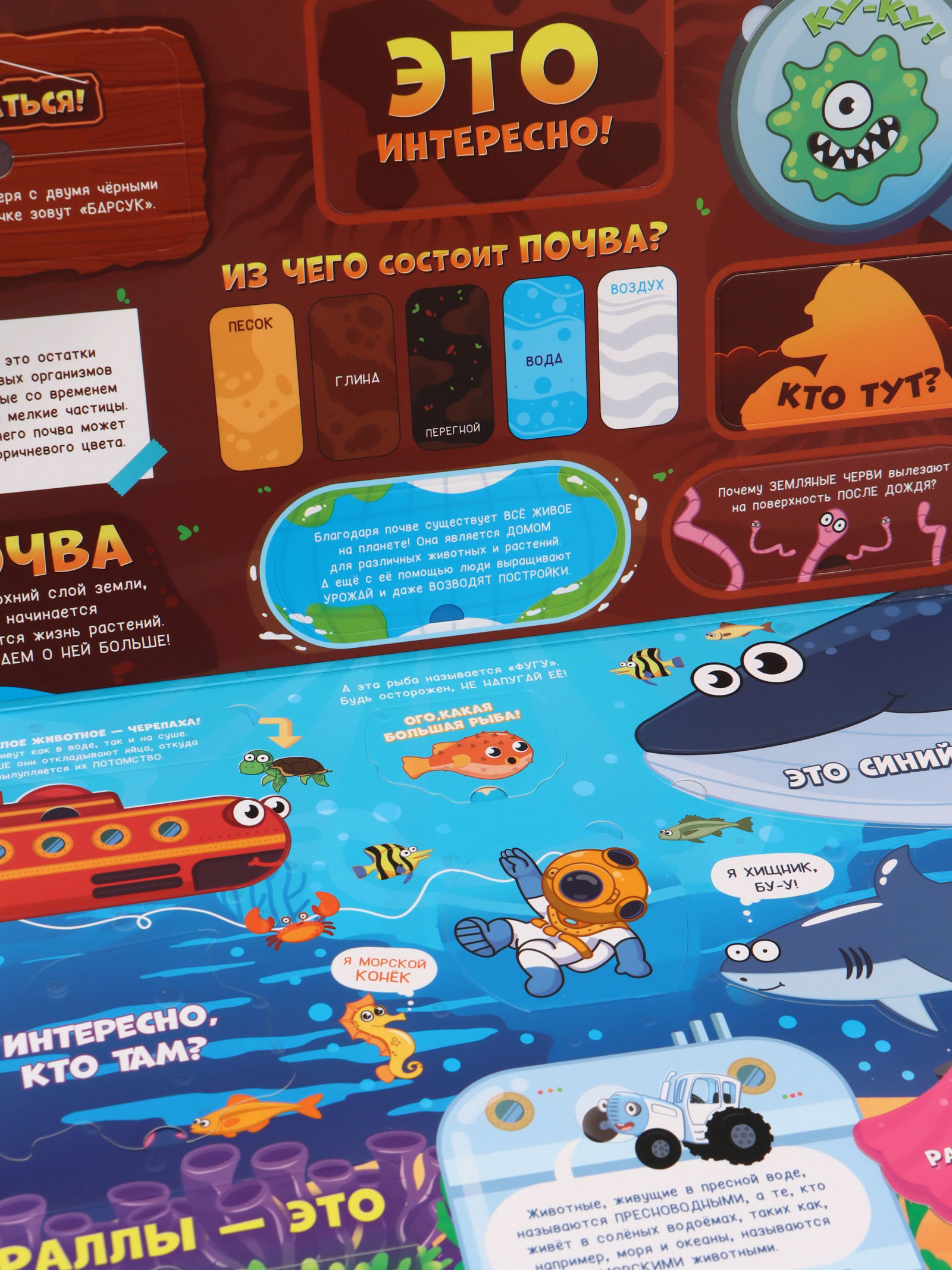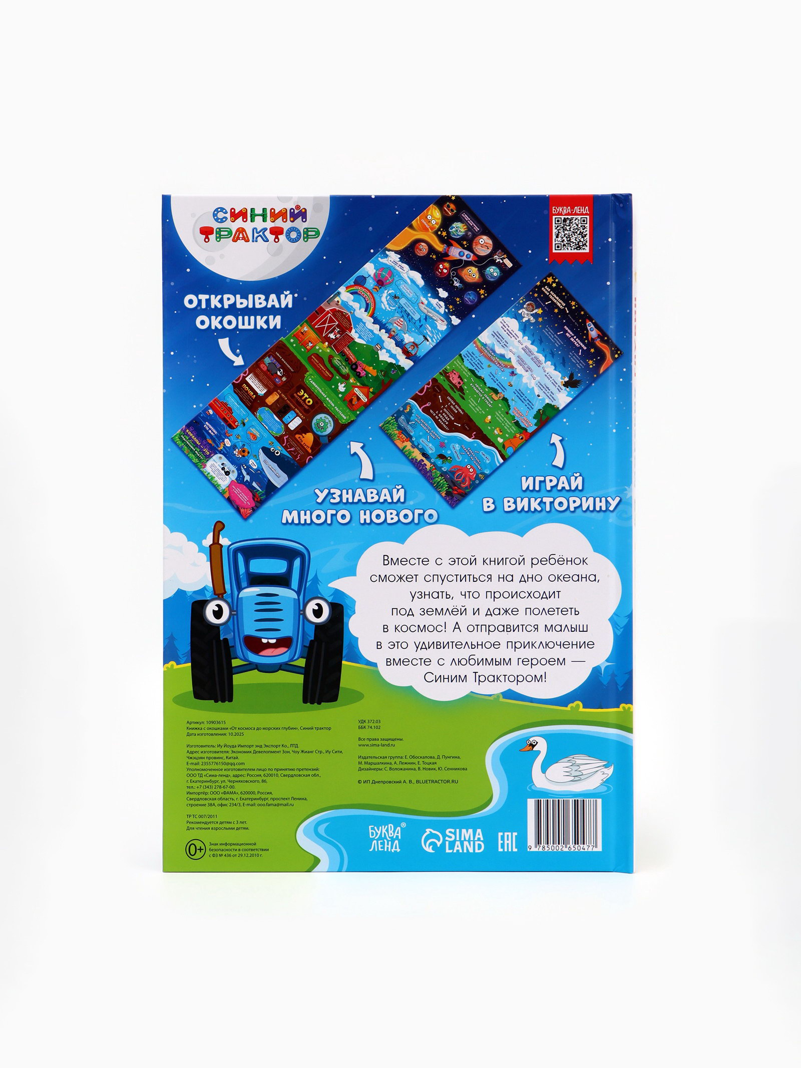 Книжка с окошками "От космоса до морских глубин.", 43 окошка, 24x1.5x34.5 см., Синий трактор, Китай