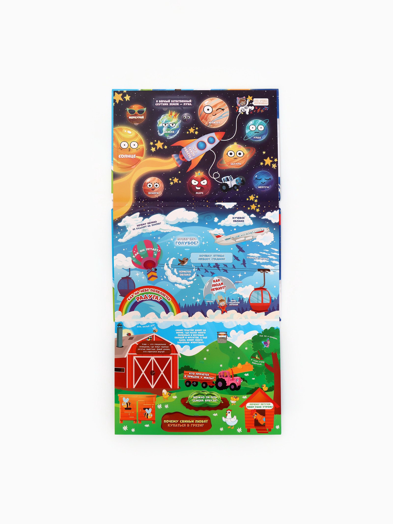 tnved: 4903000000 Лицензия разработки: Да Автор: Коллектив авторов Формат: А4+ Набор: Нет Тип: С окошком Возраст: От 3 лет Год издания: 2025 Язык издания: Русский Количество страниц: 8 Тема обучения: Окружающий мир Синий Трактор приглашает малыша в захватывающее путешествие: от далёких галактик и звёздных туманностей до таинственных морских глубин, где плавают киты и светятся медузы. На каждой странице новые открытия, а 43 подвижных окошка превращают чтение в интерактивную игру. Ребёнок не просто слушает он сам открывает, исследует и удивляется. Почему эта книжка нравится детям и родителям: