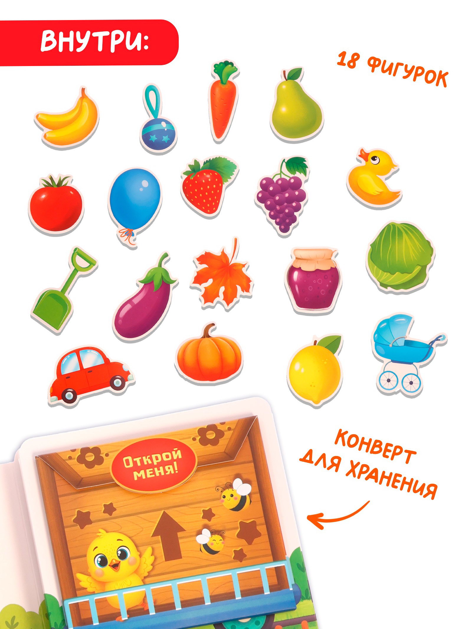 Книга-сортер "Изучаем цвета", 18 фигурок, 18x2.5x18 см., БУКВА-ЛЕНД, Китай