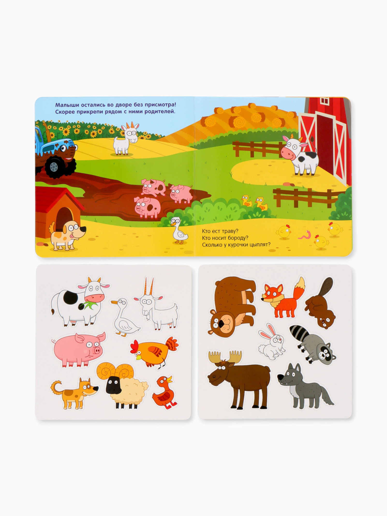 Магнитная книжка "Весёлые зверята", 20x20.3x0.5 см., Синий трактор, Китай