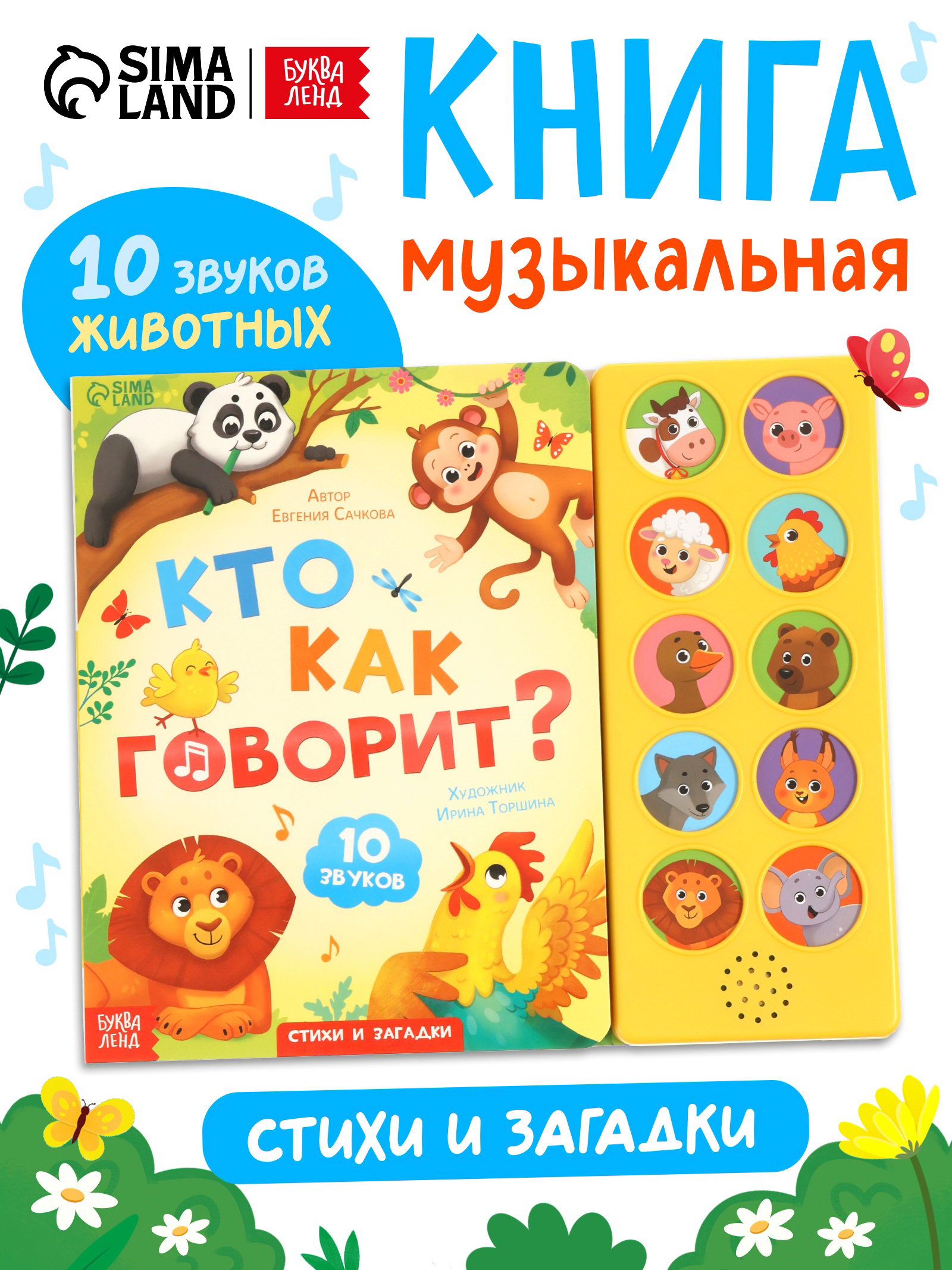 Музыкальная книга "Кто как говорит", 10 звуков, 25x1x23 см., БУКВА-ЛЕНД, Россия