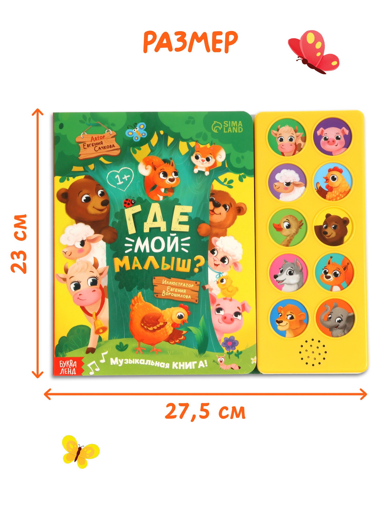 Музыкальная книга "Где мой малыш?", 10 звуков, 25x1x23 см., БУКВА-ЛЕНД, Россия