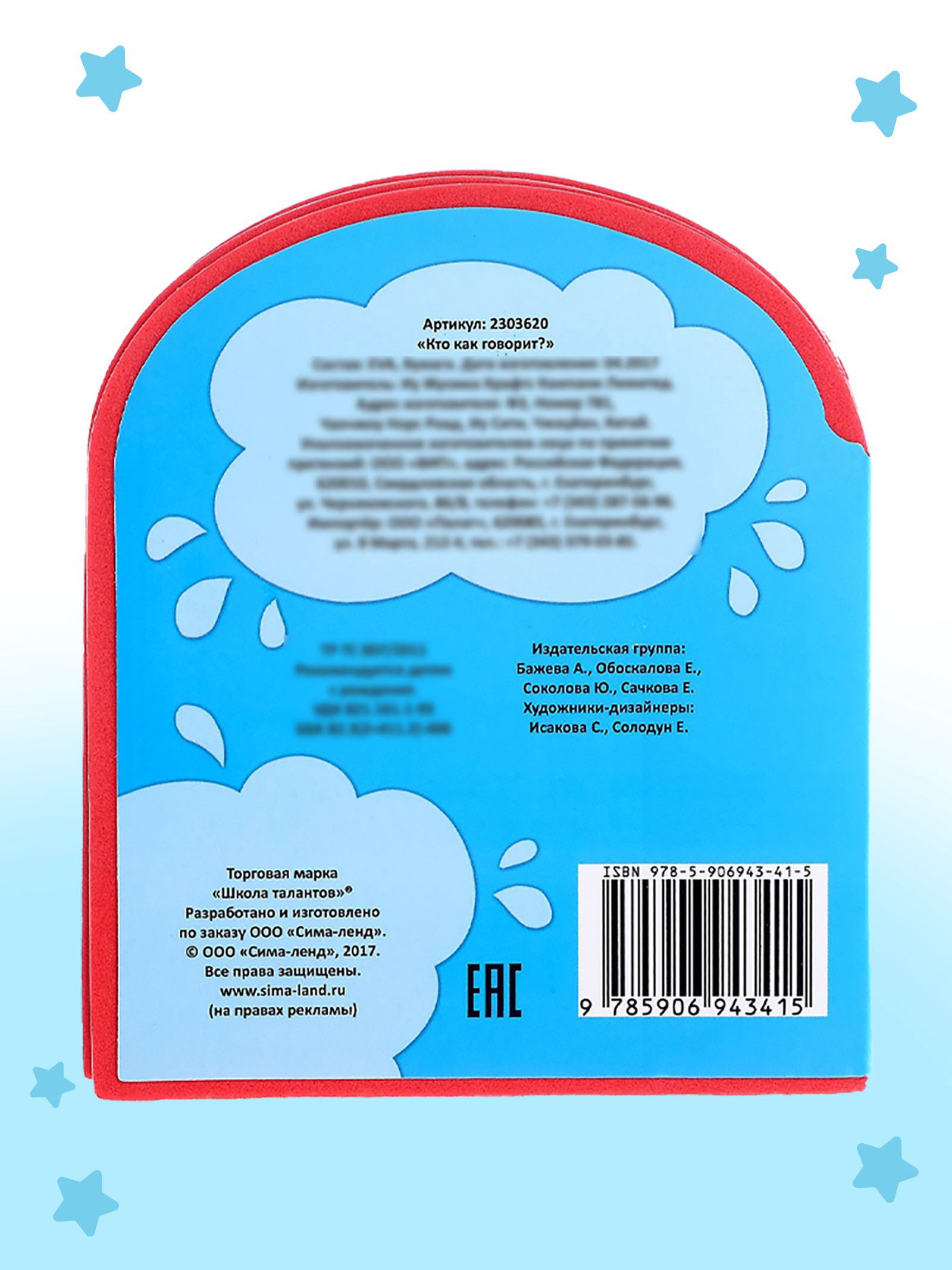 Мягкая книга EVA "Кто как говорит", 12 стр., 10x12x2.5 см., БУКВА-ЛЕНД, Китай